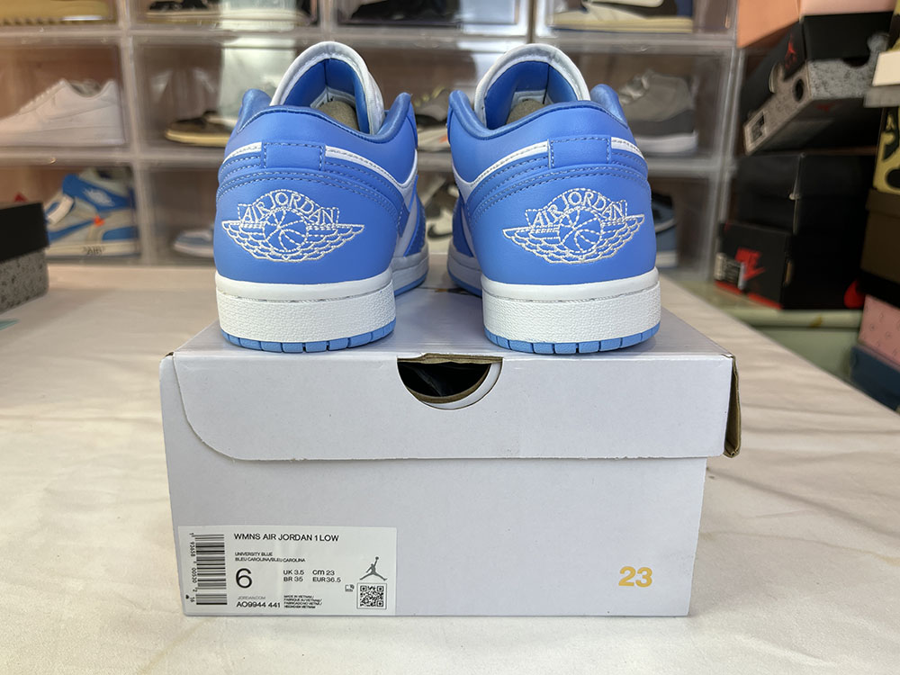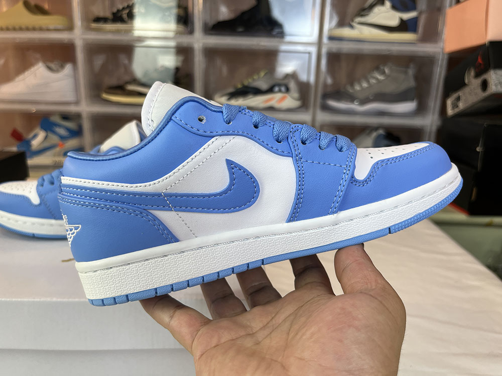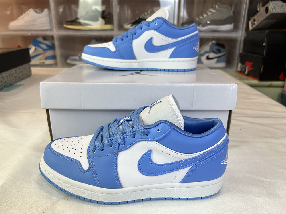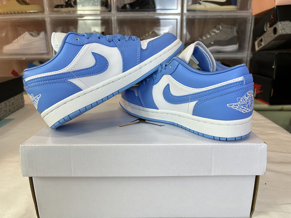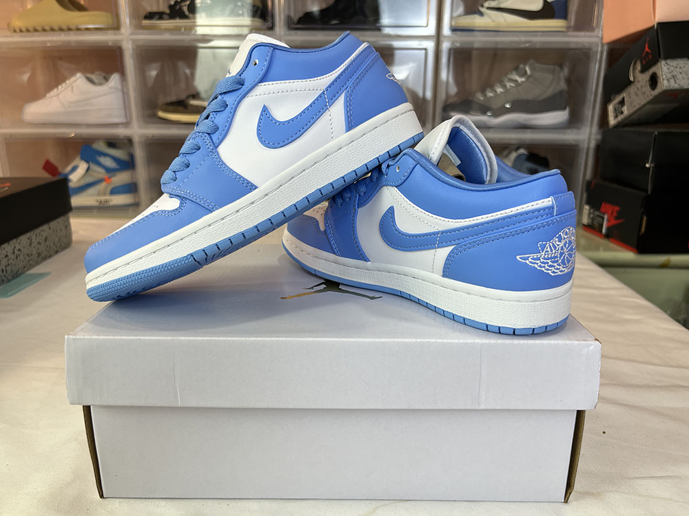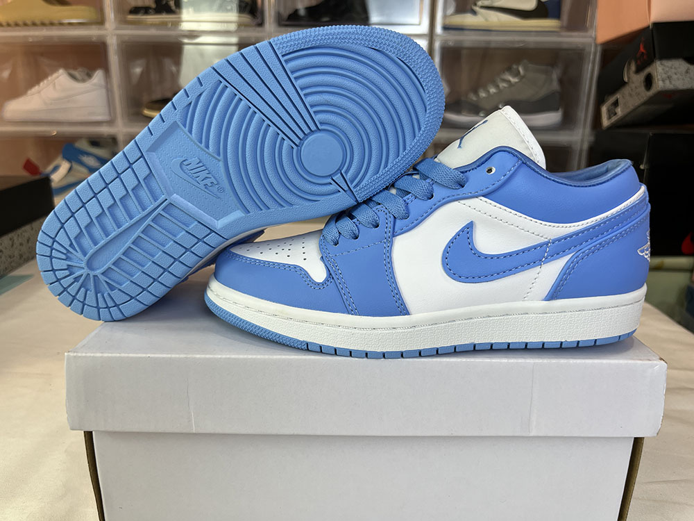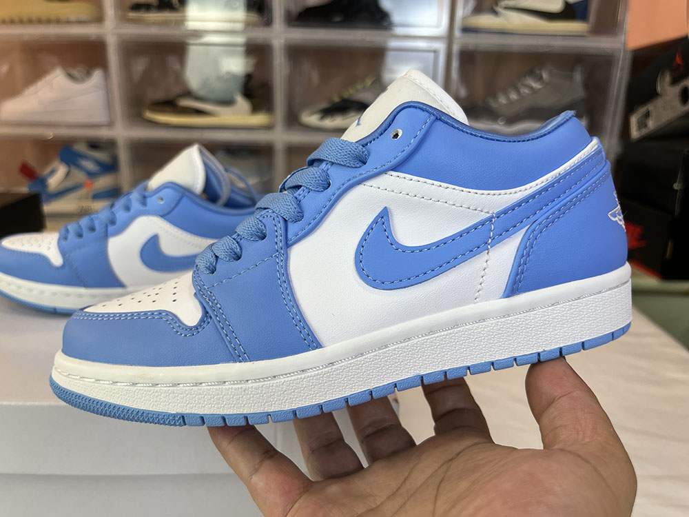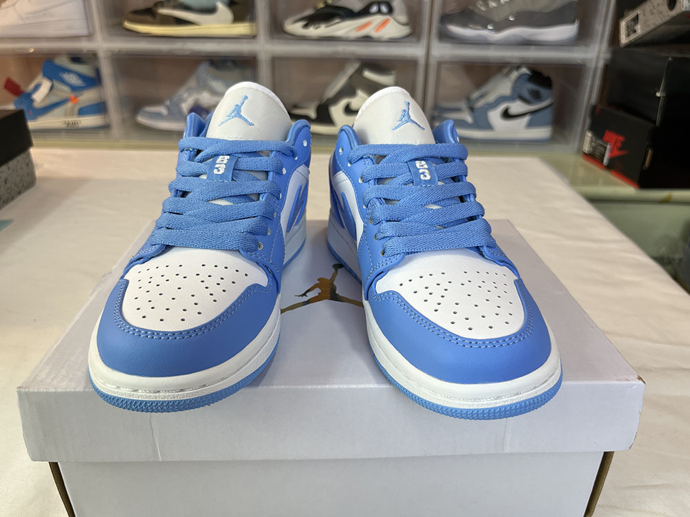 This new color matching is made with the same color matching of AJ1 North Carolina Blue. With the classic shape of AJ1 low, it looks very fresh and bright, and the effect on the feet must be good!