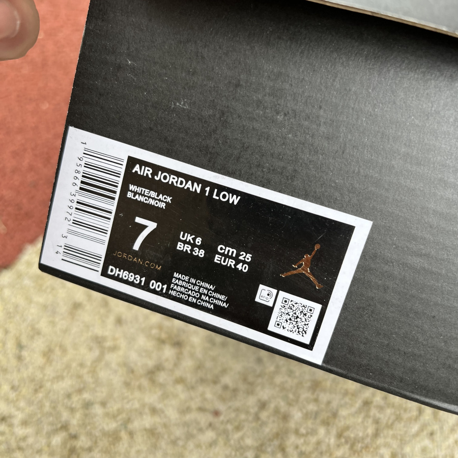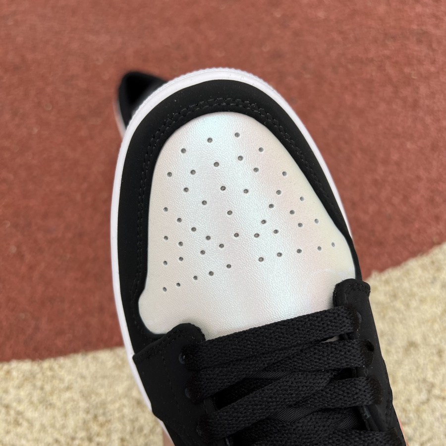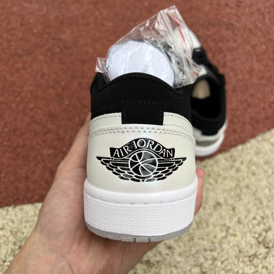 Jordan Air Jordan 1 Low White black black and white low-top sneakers DH6931-001, the black part is covered with nubuck leather, the white part is made of a leather-like material like pearl white, and black and white form the color of the shoe body. Although the color matching is only composed of black and white, the black and white shoe materials present different textures.