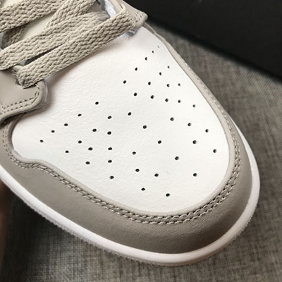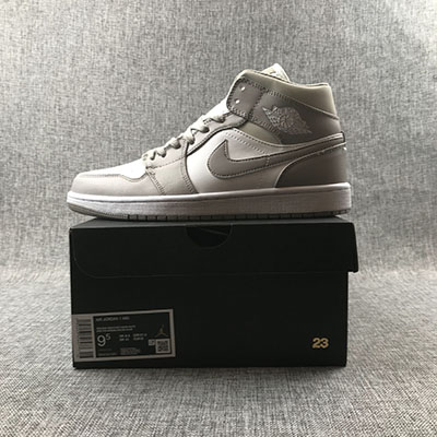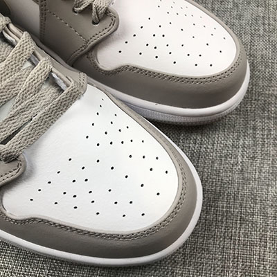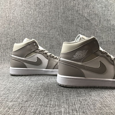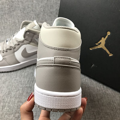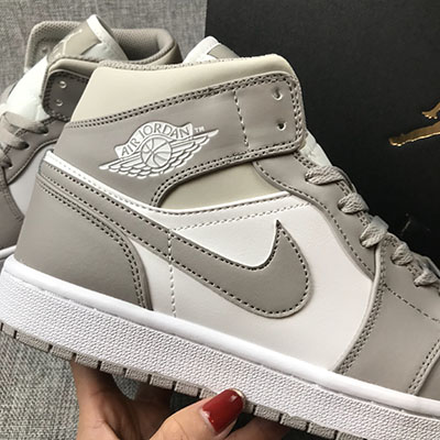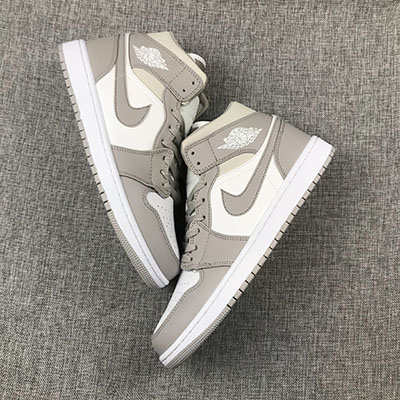 This Air Jordan 1 Mid is crafted in leather with a white sole with tan overlays, Swooshe logo, tongue tab, laces and rubber outsole.