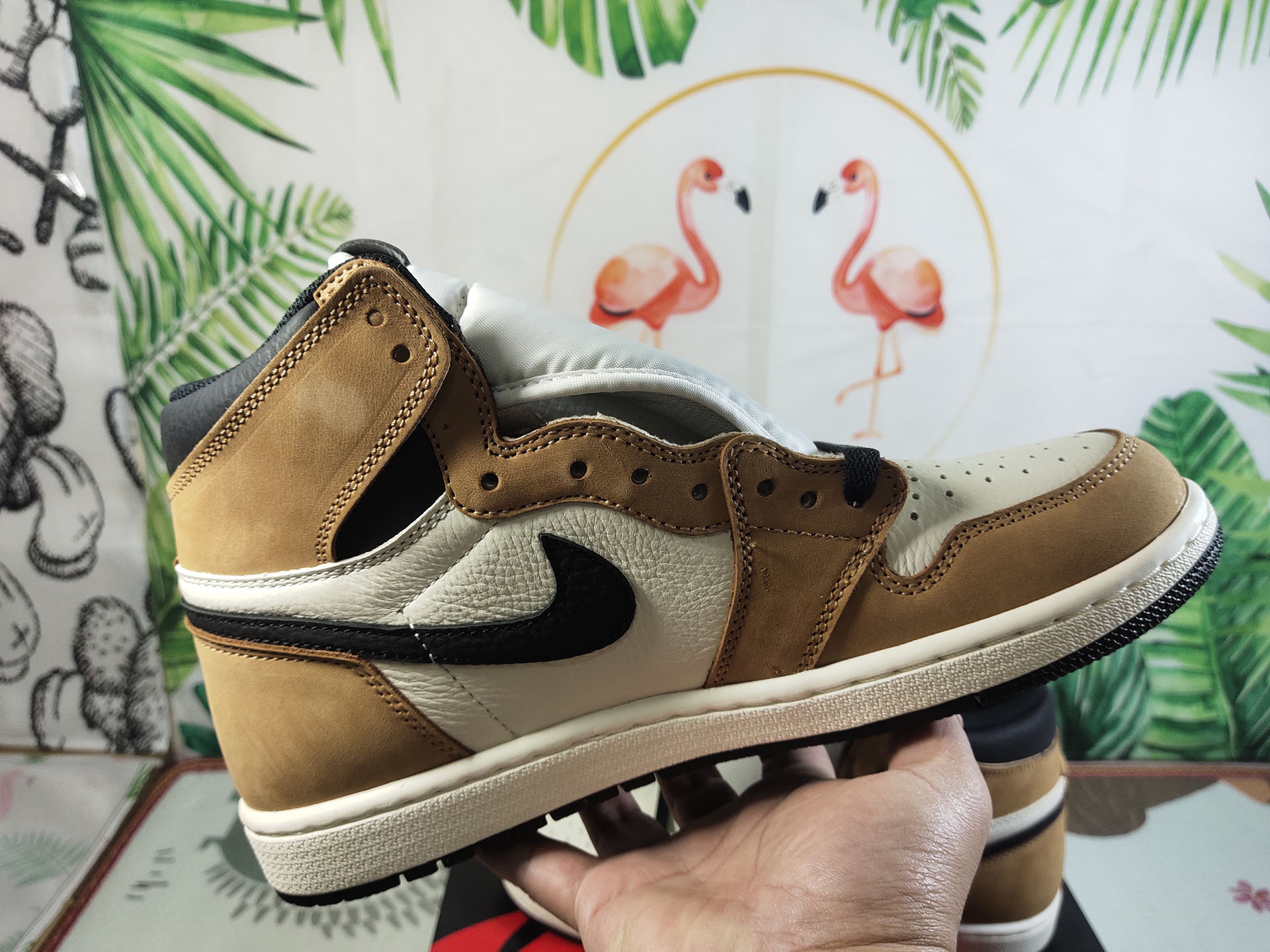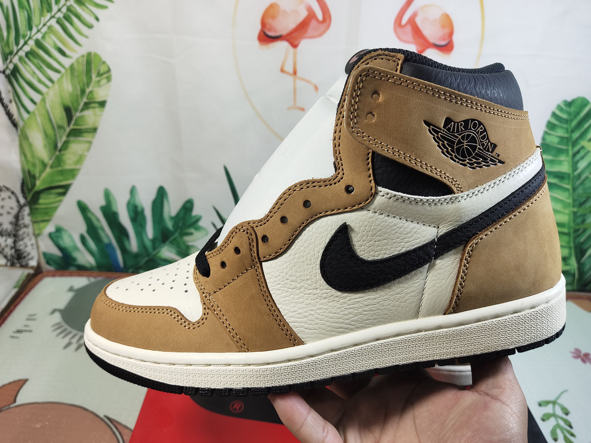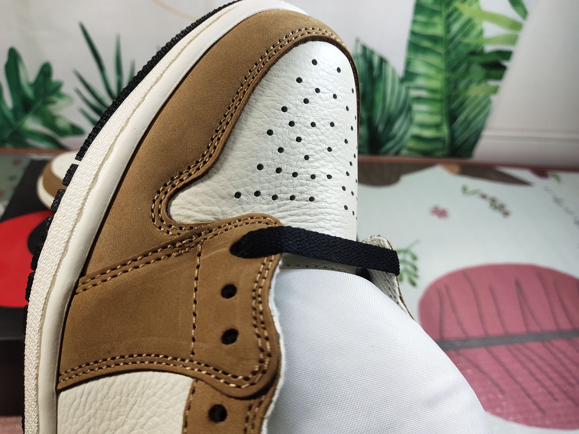 This Air Jordan 1 pays homage to the Brown shirt he wore while receiving the award. It features a White leather upper with Wheat overlays and Black detailing on the tongue label, ankle collar, Swoosh logo and rubber outsole.