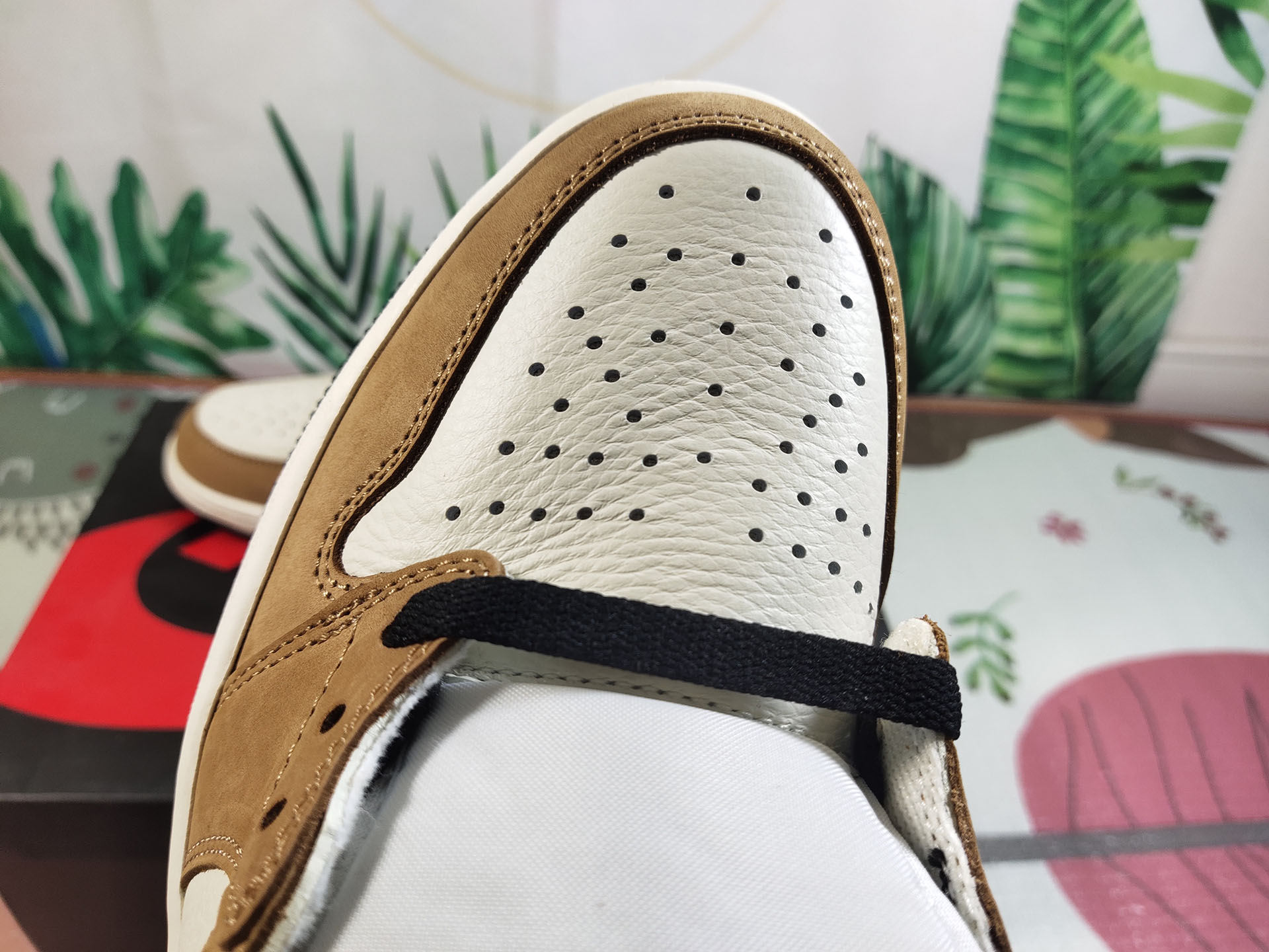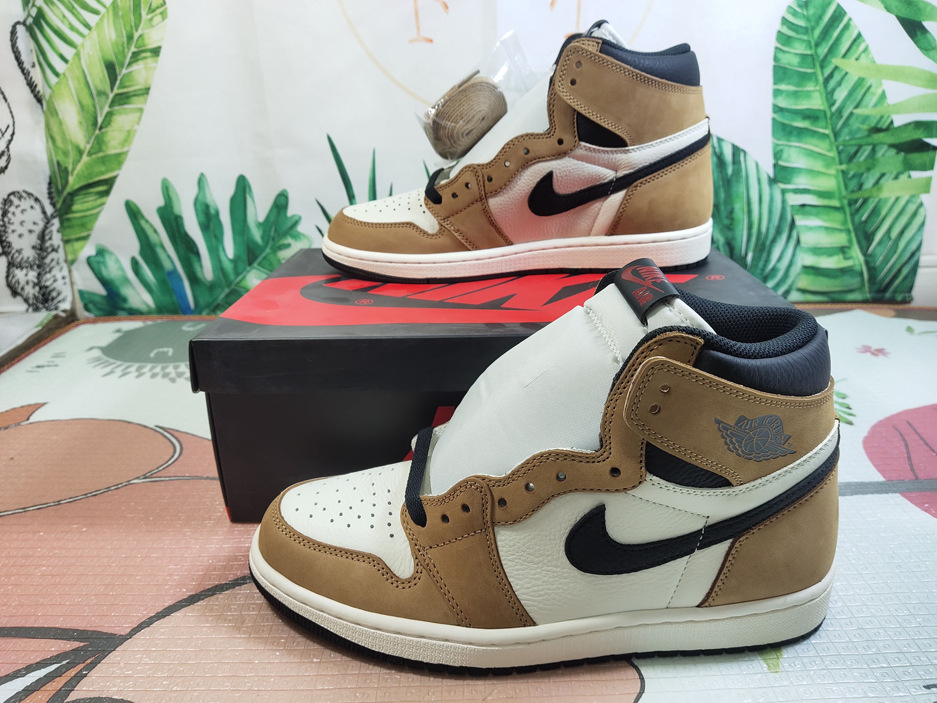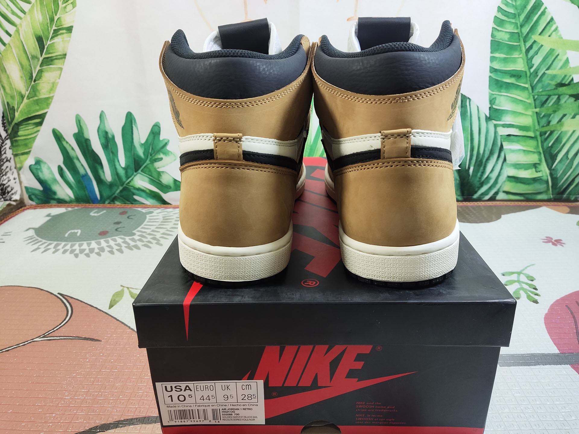 This Air Jordan 1 pays homage to the Brown shirt he wore while receiving the award. It features a White leather upper with Wheat overlays and Black detailing on the tongue label, ankle collar, Swoosh logo and rubber outsole.