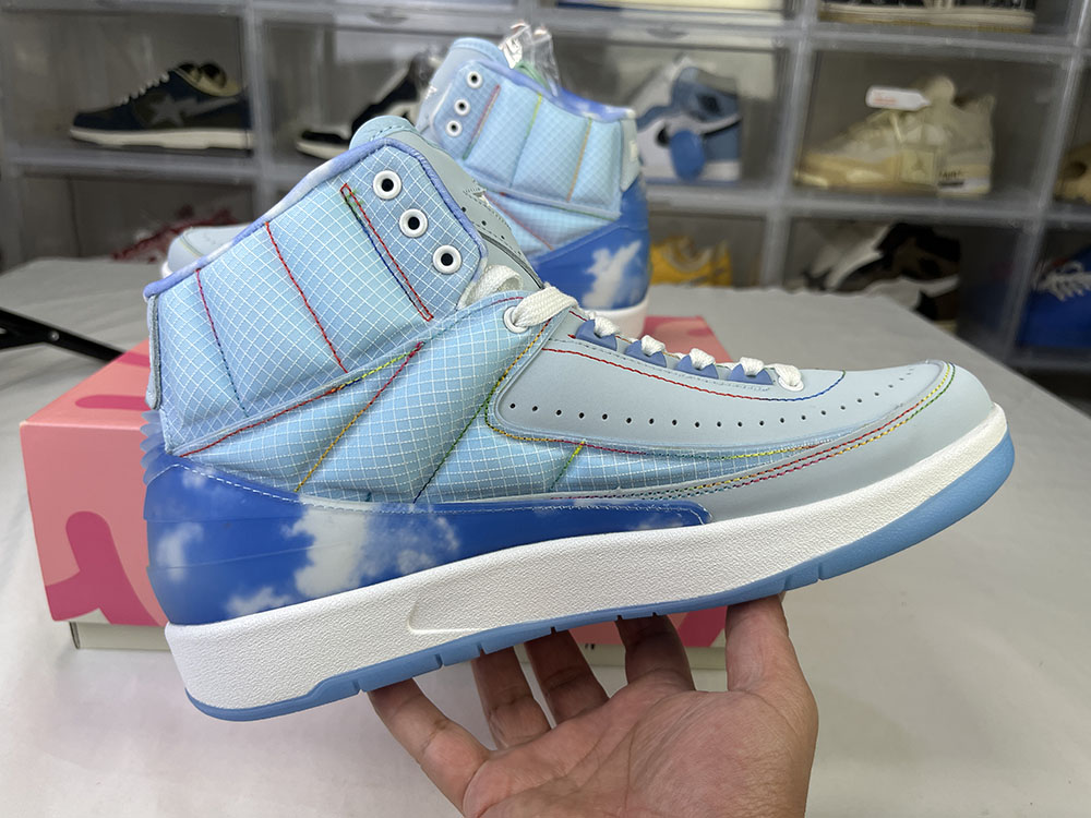 The heel is decorated with J Balvin lightning-smiling face, and the rainbow element is cleverly hidden on the seam of the shoe. The inner lining and heel are in a cloud pattern, and the uppers are detailed and rich in suede and fabric. The LED device on the tongue continues J Balvin's signature style, and the shoes are colored blue.