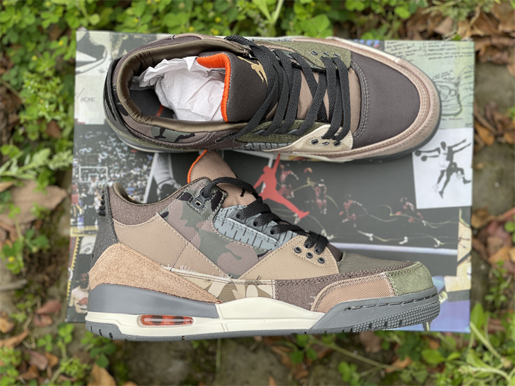 Inspired by vintage military stores and military-inspired fabrics, the AJ3 'Patchwork' features a variety of camouflage patterns on the upper, combined with waterproof canvas, wool, herringbone and twill materials; in addition, the Jumpman logo on the heel can also be used Swap it out with the included Air Velcro for fun.