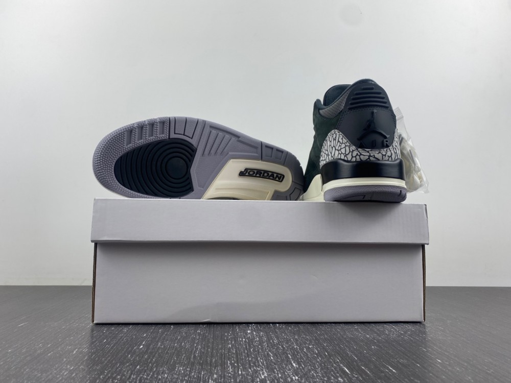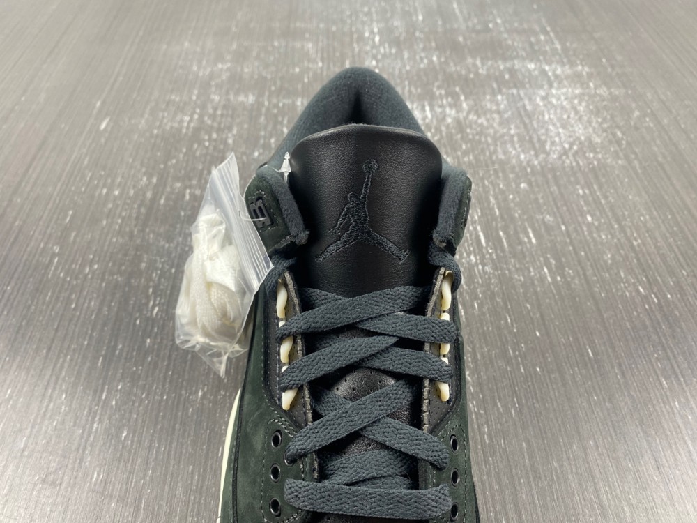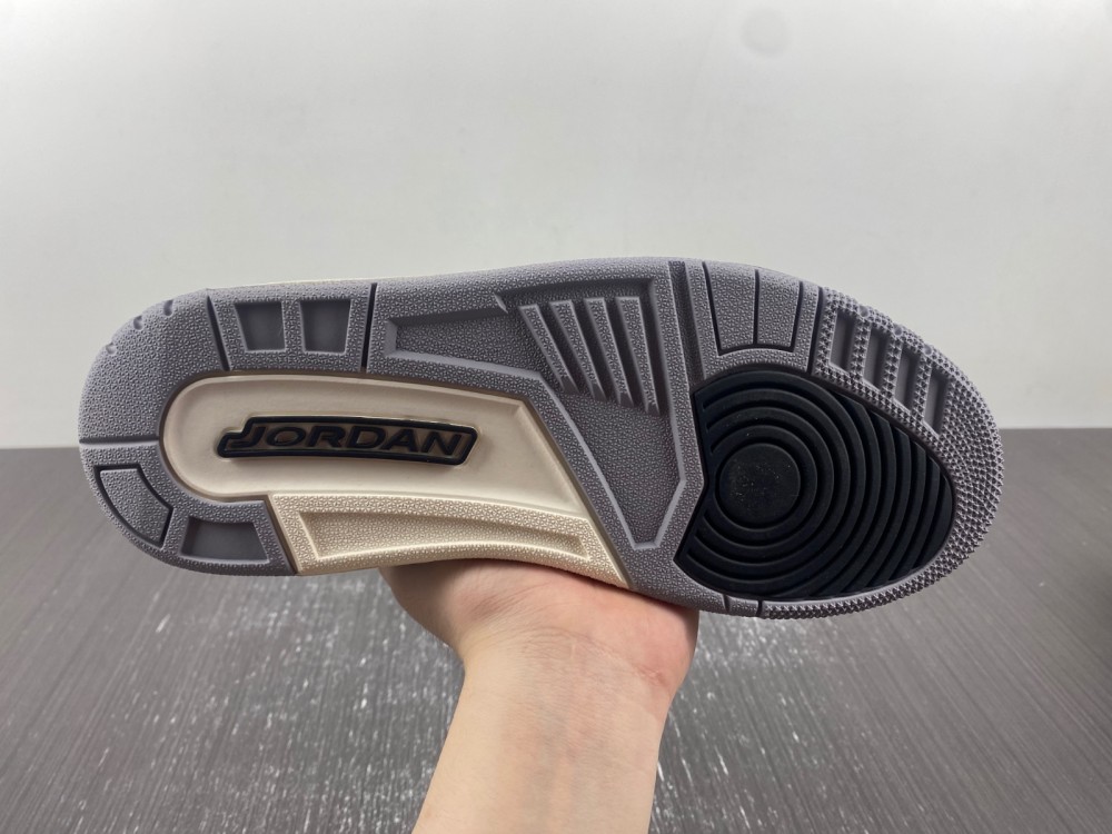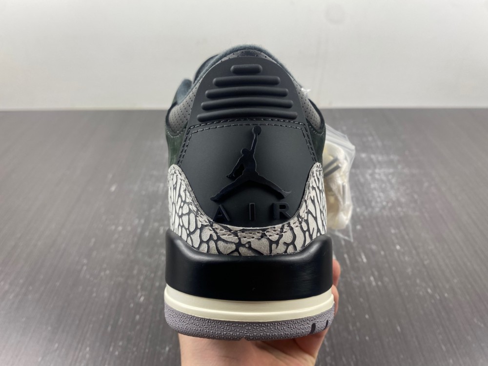 The tongue is embellished with cement ash and the AJ3 body is covered with black suede. The elephant grain is retained, and the beige age sensitive oxidation effect is used in the middle sole of the upper, and the appearance level is similar to AJ3 black cement.