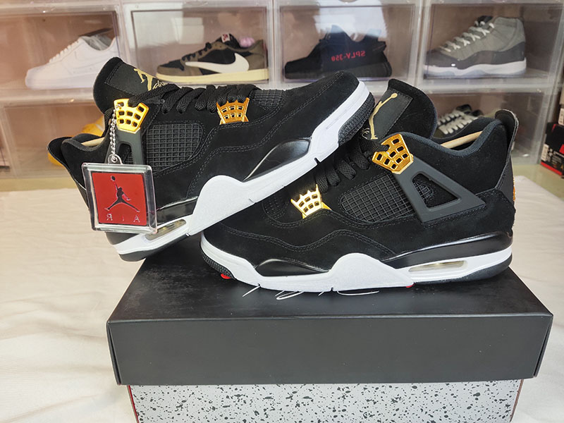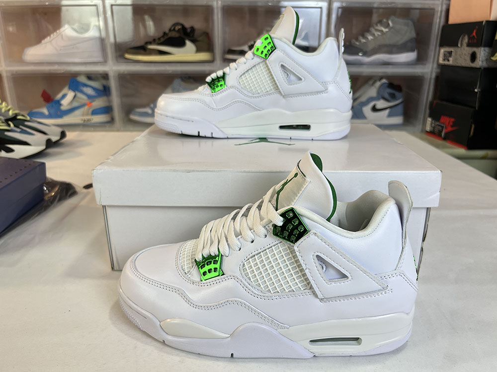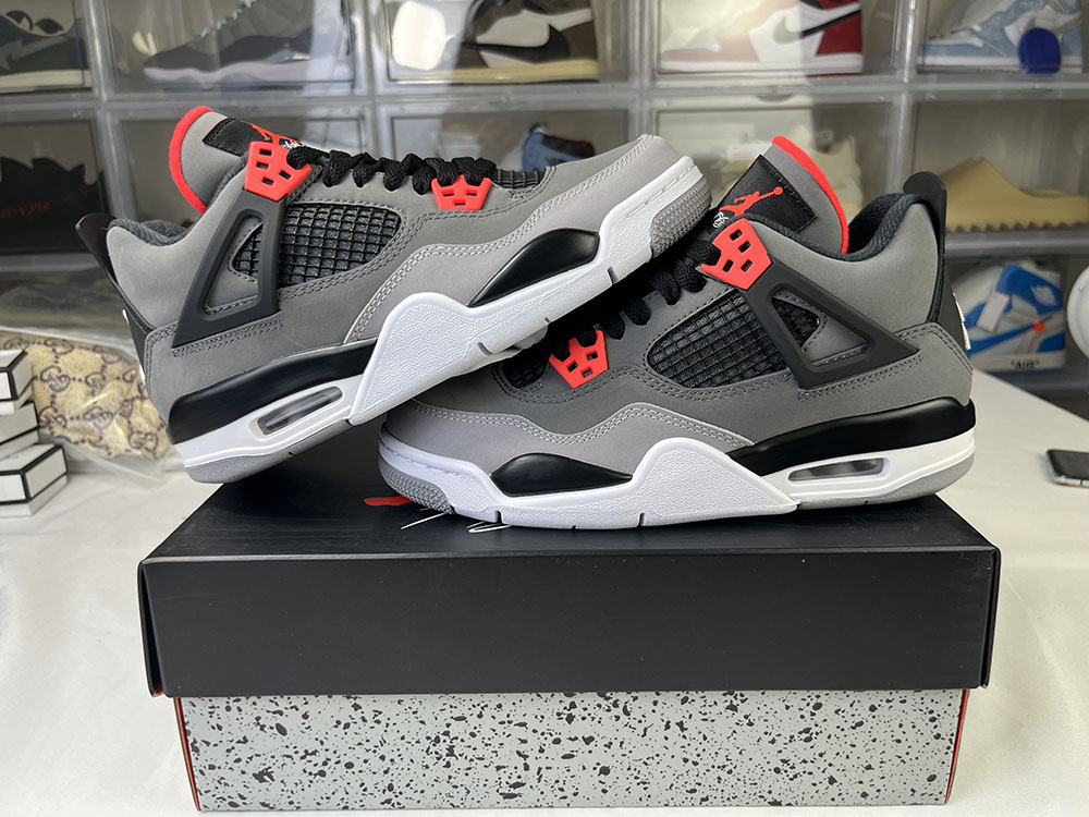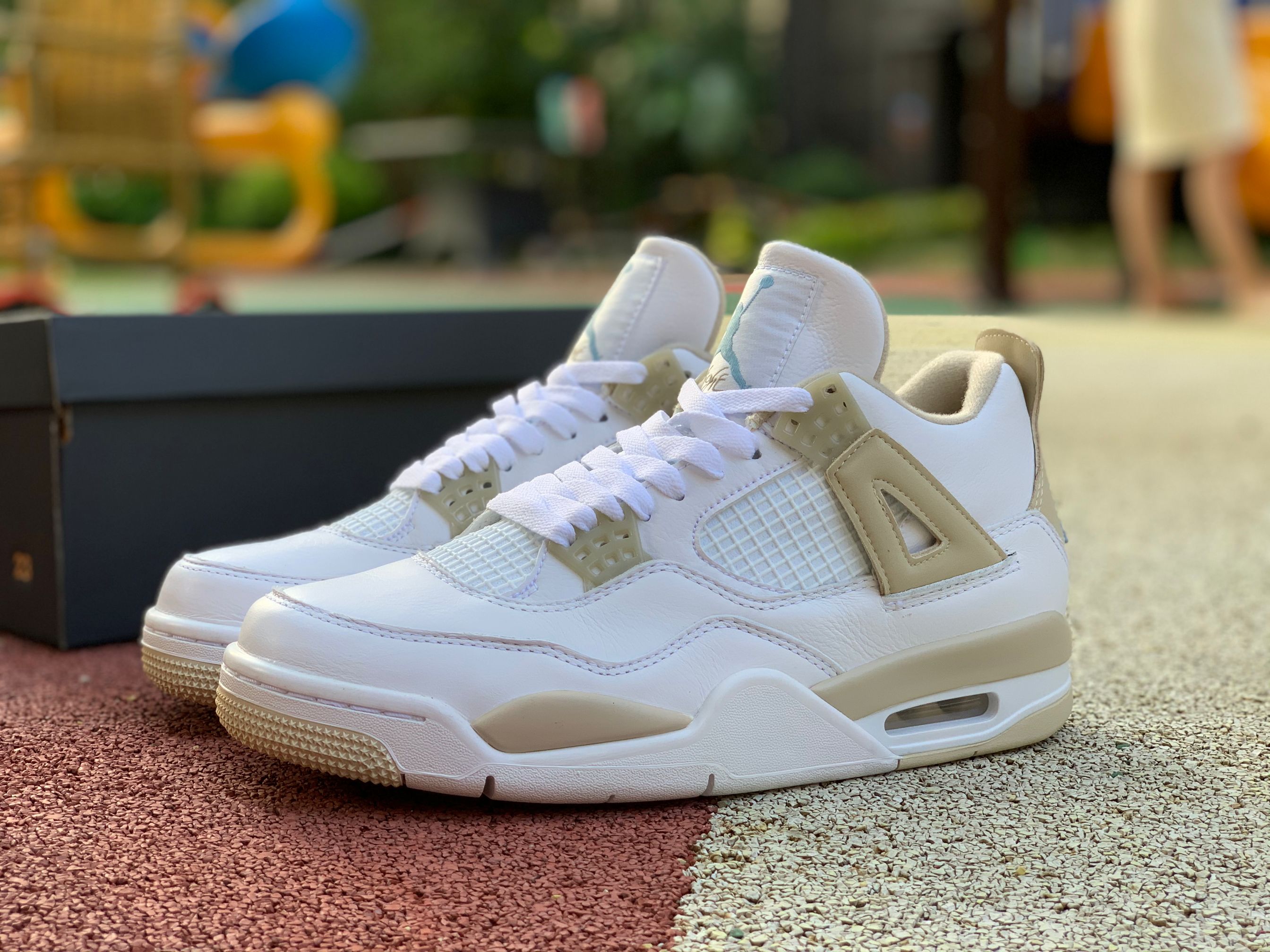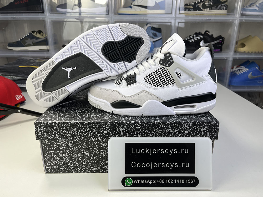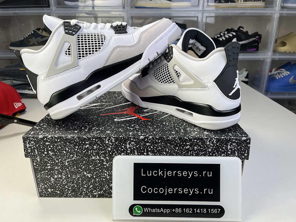 The shoes are in a similar hue to the Air Jordan 4 "Military Blue" color scheme, replacing all blue details with black, and the rest of the shoes will have a white leather upper and neutral gray overlay, and a white, black and gray splicing design will appear on the rubber outsole.