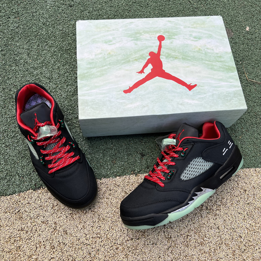 The shoes are embellished with a silver Jumpman Logo and shark teeth. Double canvas print, Air fenestration midsole. The shoe body is made of suede leather upper with dark black tongue and midsole, and the upper can be torn off.