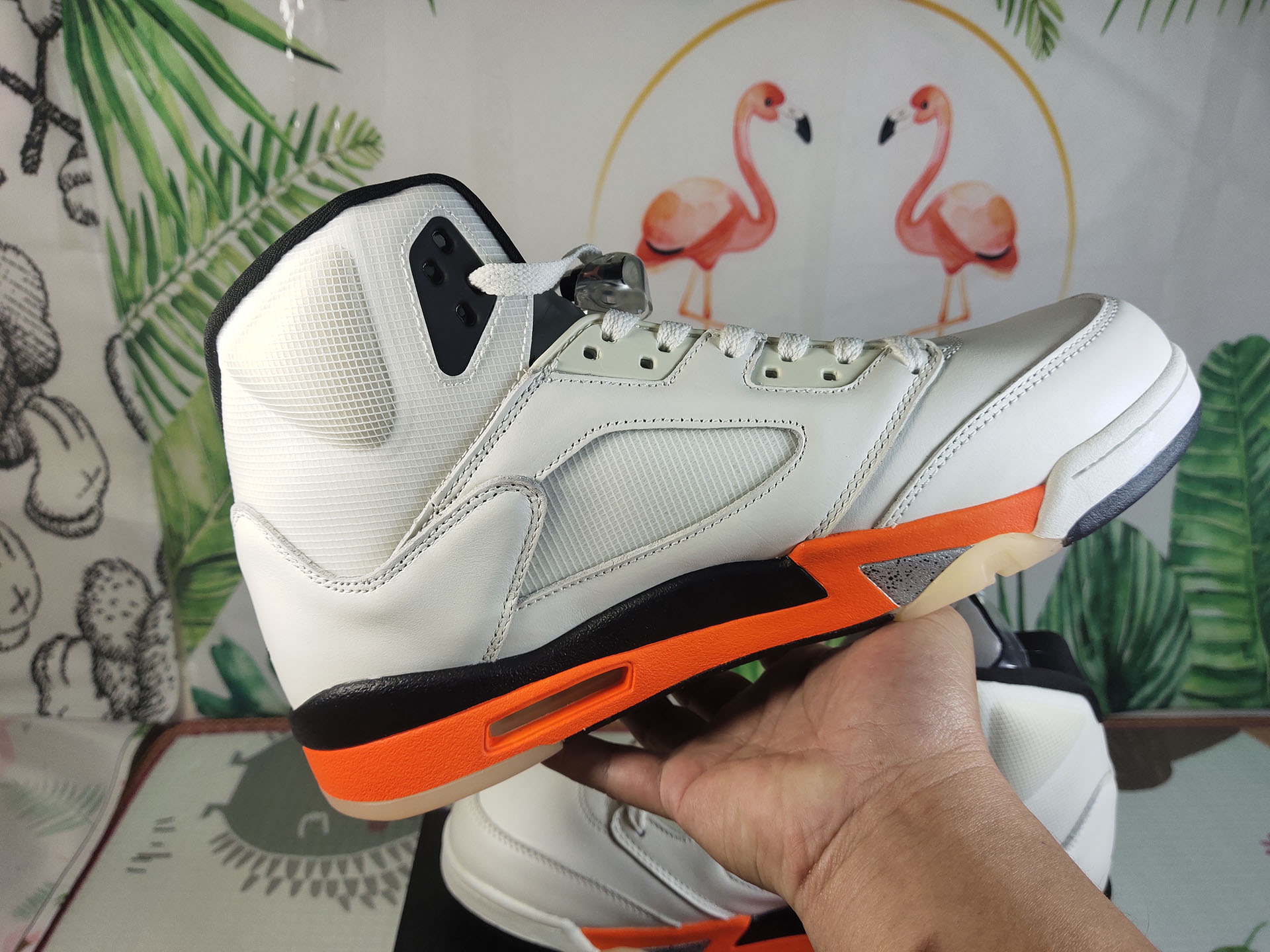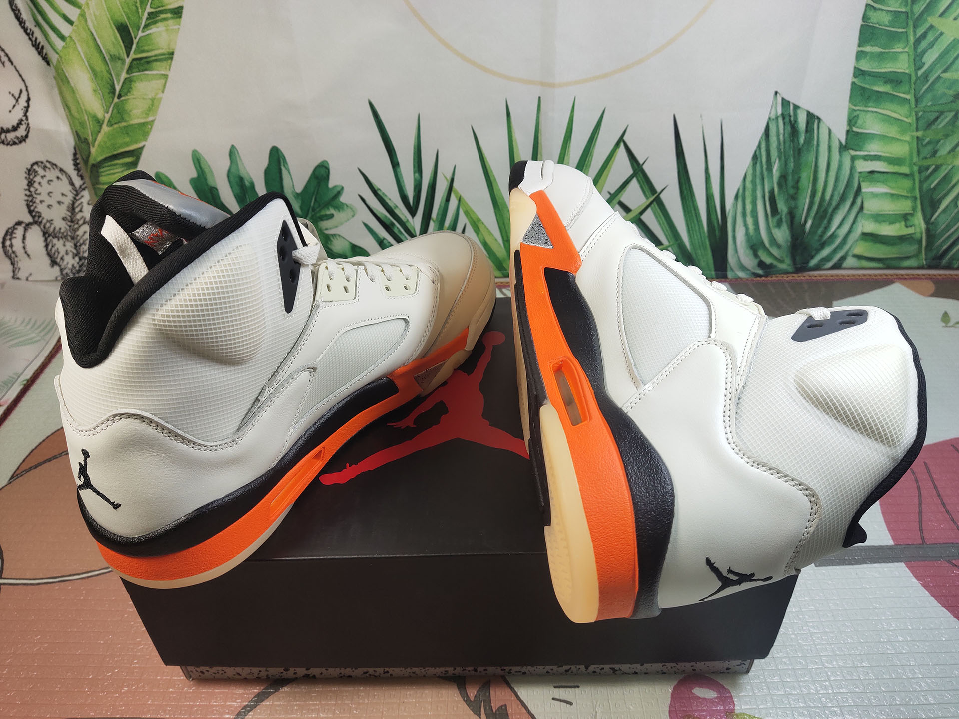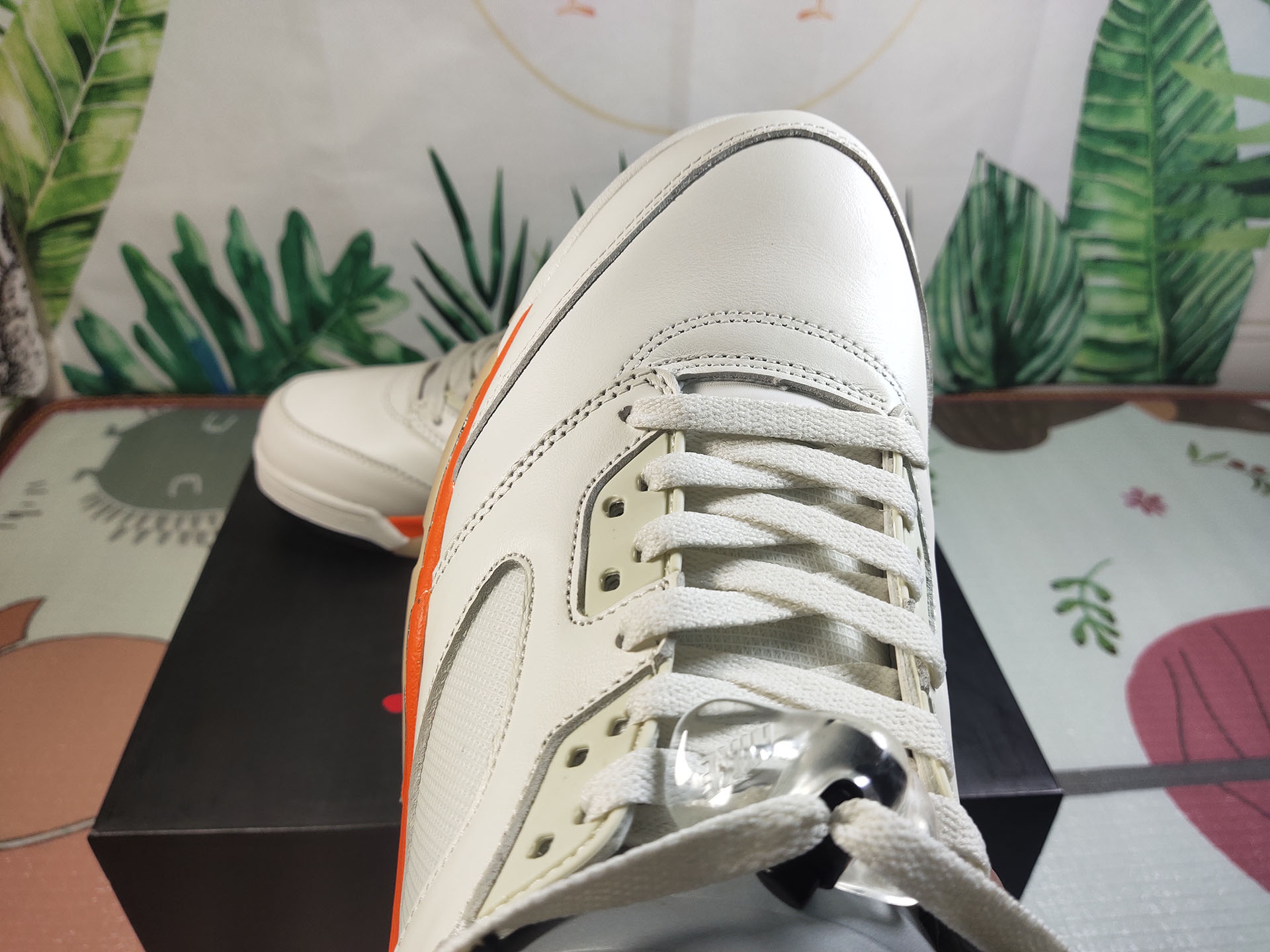 The upper combines traditional white leather construction with textile mesh on the collar, throat and quarter panel, replacing the plastic netting of the original.