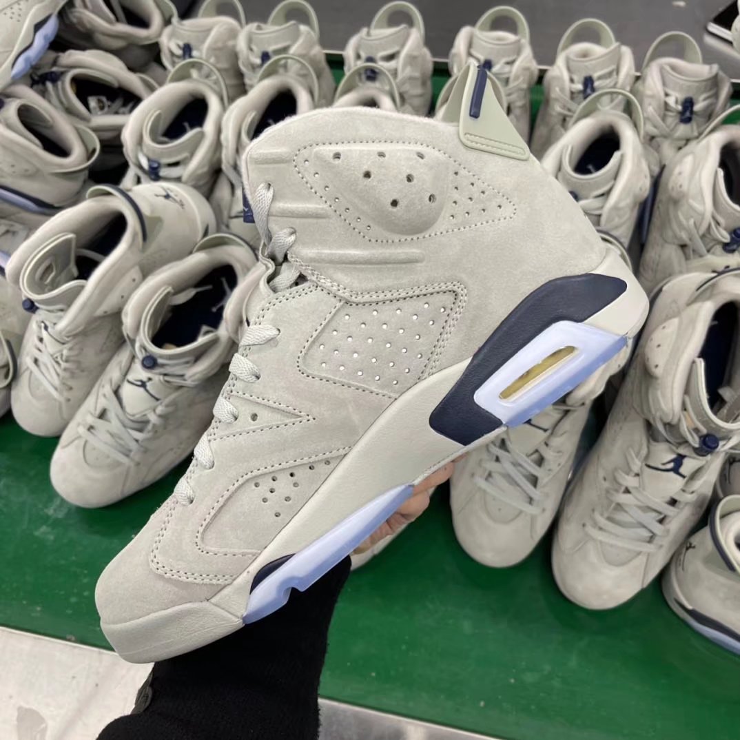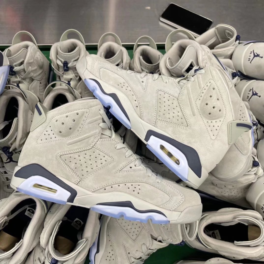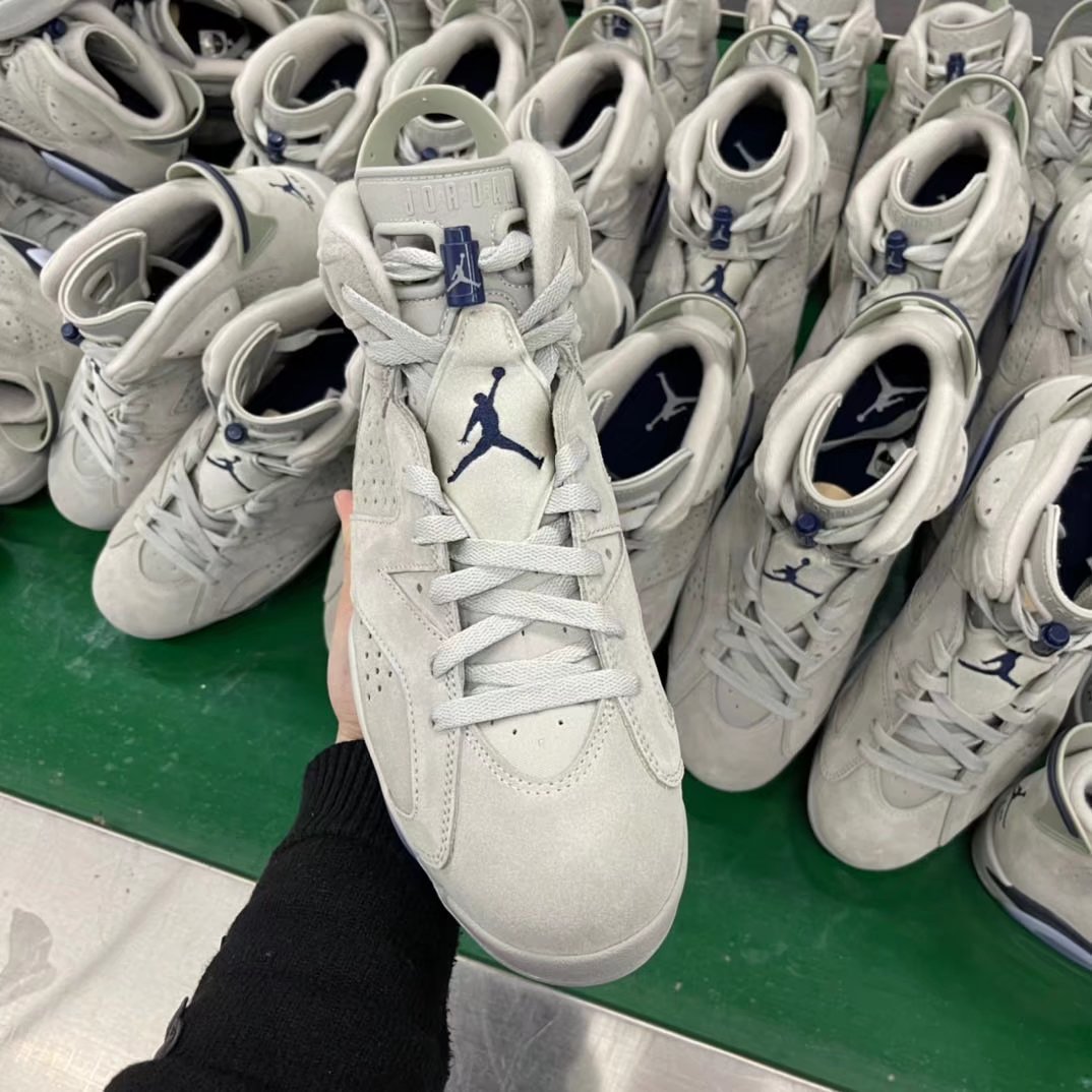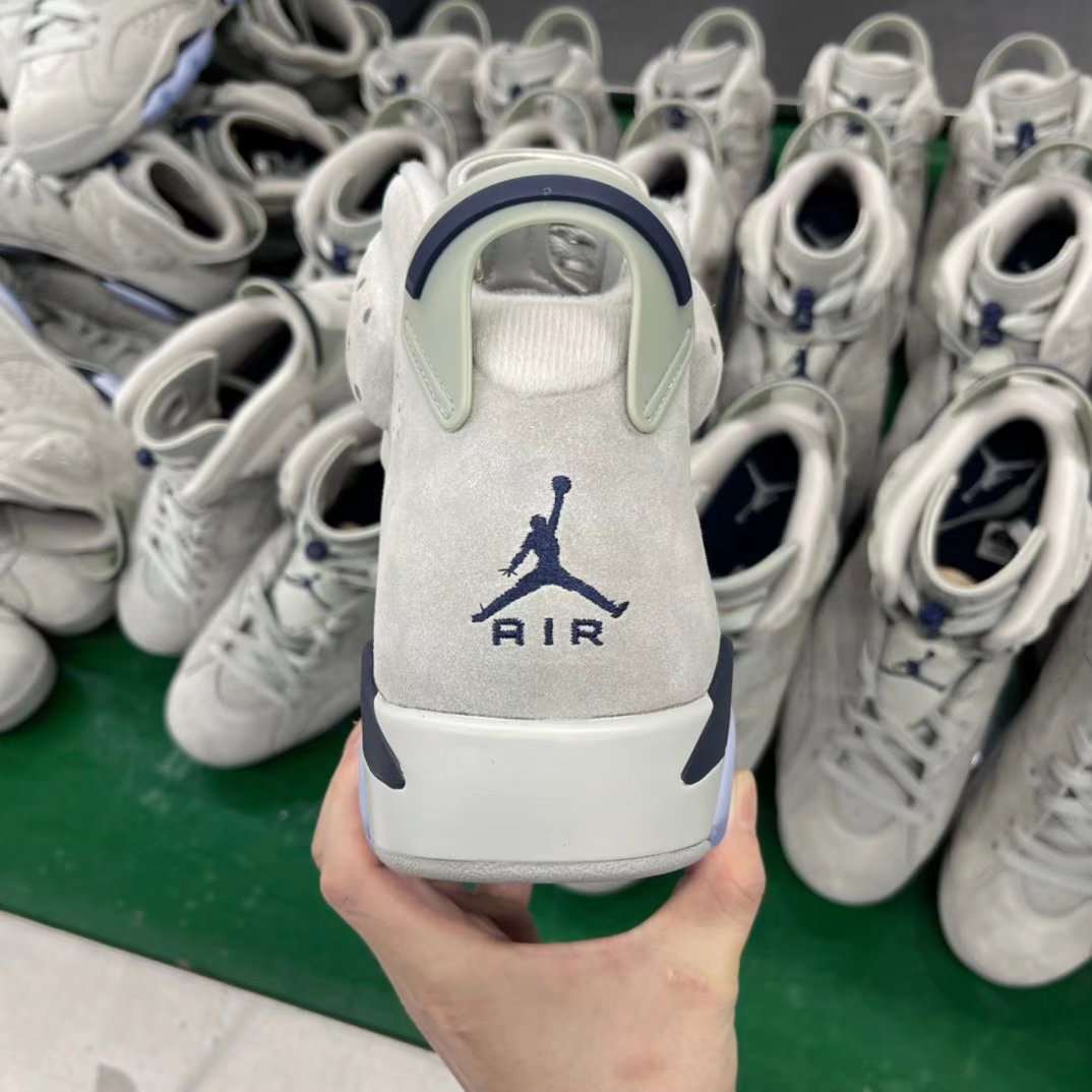 This Air Jordan 6 offering features a grey suede sole with matching tongue, laces, heel clip and midsole. Navy detailing covers Jumpman branding on the midsole, heel clip and icy translucent outsole. The look for the Jordan 6 "Georgetown" releases on September 3, at select retailers and Nike.