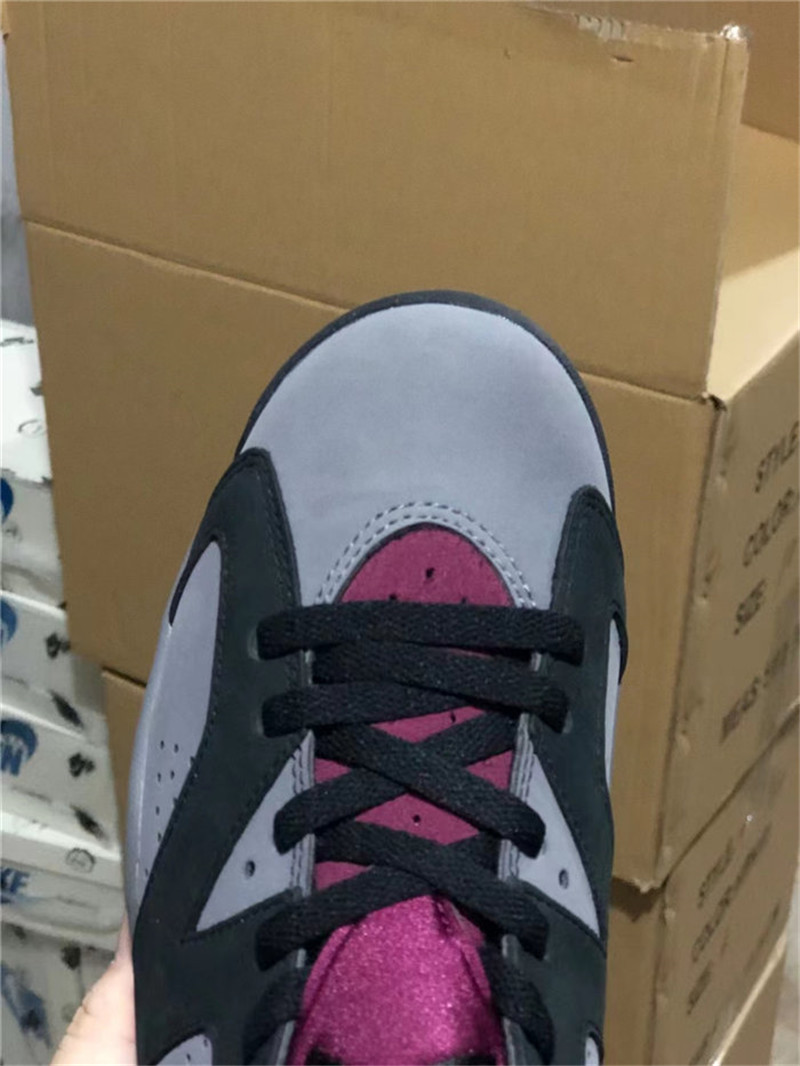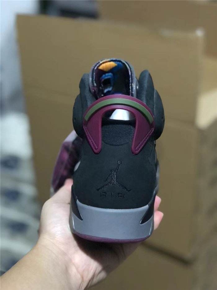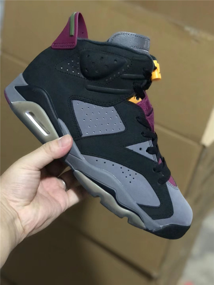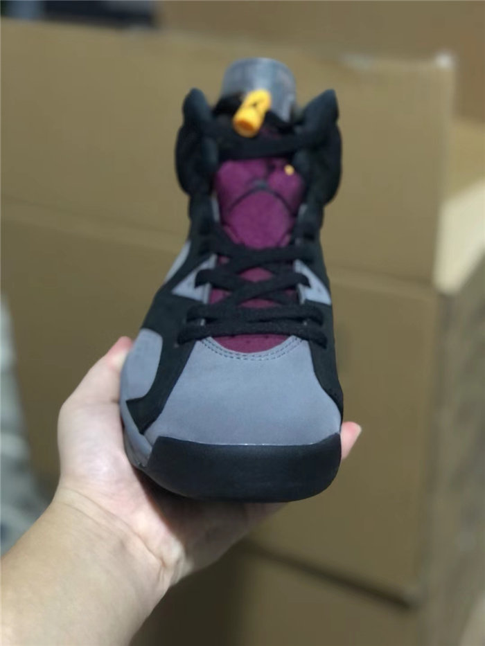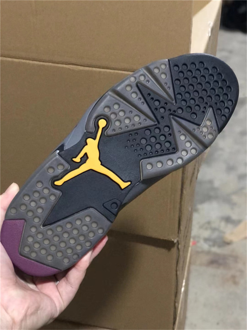 The translucent tongue features a multicolor print that replicates the look of the AJ7's neoprene tongue, while Bordeaux accents land on the throat and molded heel tab.