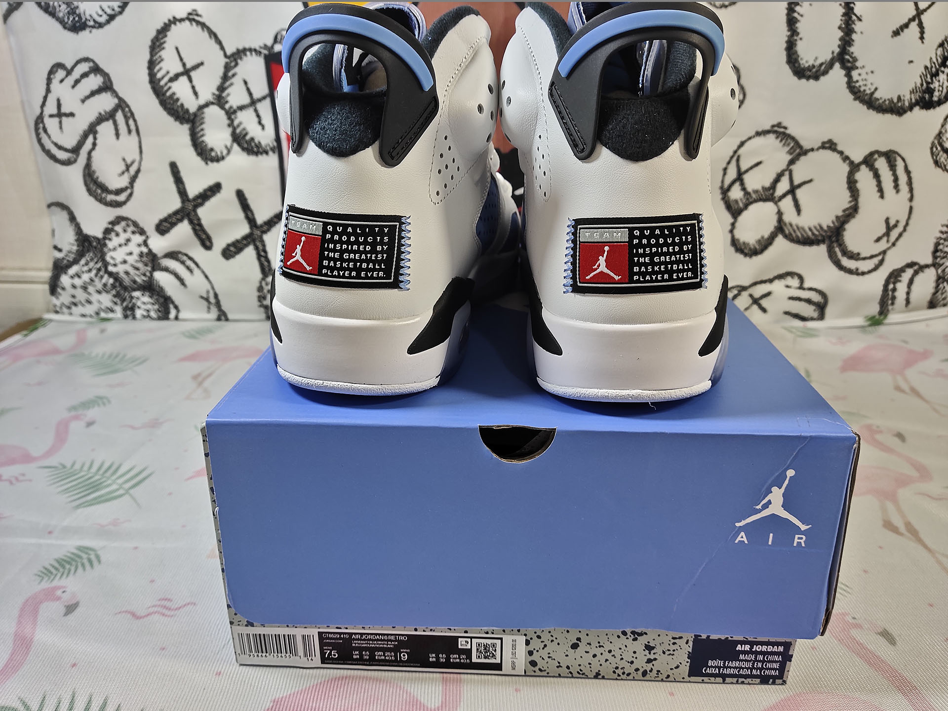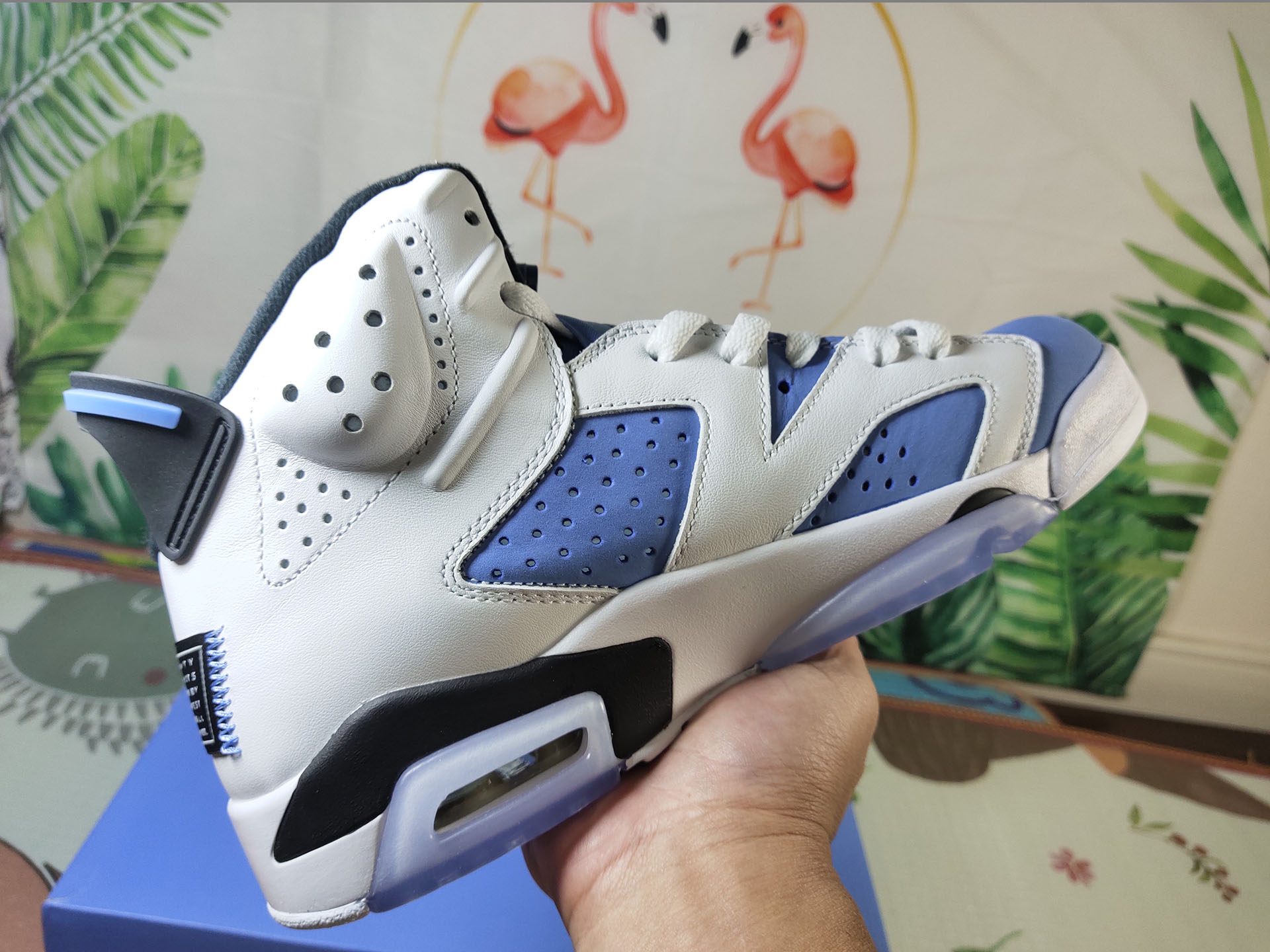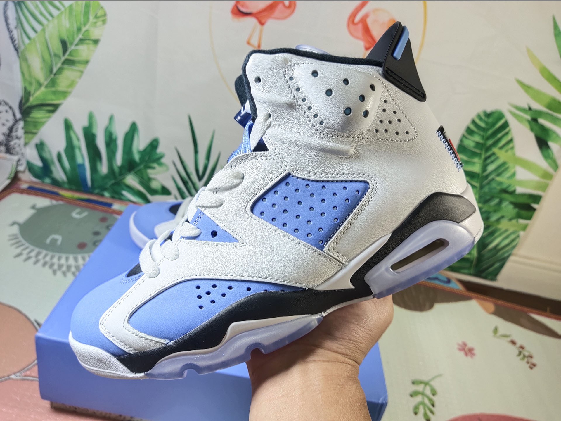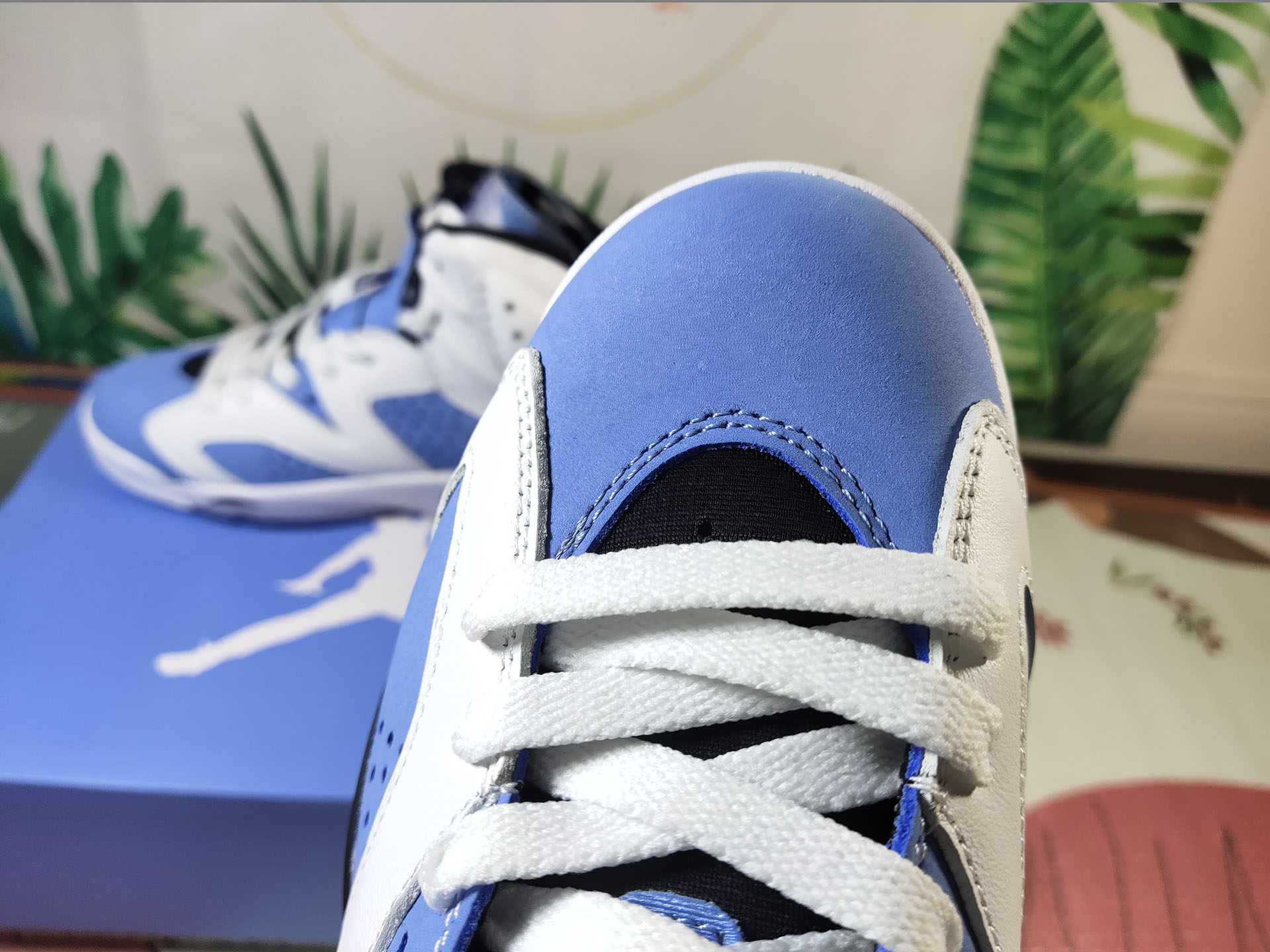 The tongue resembles the geometric texture of the Air Jordan 7, and the frame and details of the shoe are complemented by white. Represents the shades of Jordan's college days. The toe and sides are complemented by North Carolina Blue nubuck leather, and the outer layer is covered with translucent rubber. North Carolina tonal vision creates no threshold for wearing. It has evolved into the color totem of AJ sneakers, with a light blue jelly outsole paired with a black midsole line.