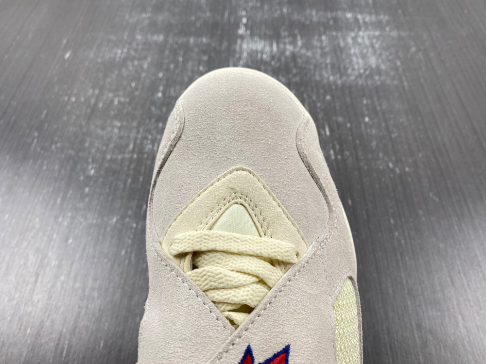 The AJ8's color scheme is inspired by the Cuban flag, with the brand's co-logo on the insole and a special layout design. The classic fleece Jumpman tongue logo is paired with neutral tones such as cream and beige, with bright gold to add elegance.
