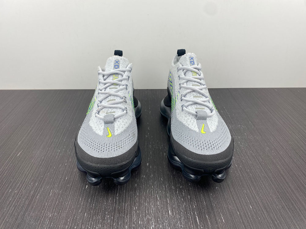 The sole structure includes a TPU frame, foam padding and an extra-thick Air Max air cushion. The thickness is considerable, and the midsole and outer upper have a breakthrough. It is equipped with a full-length air cushion, bringing an on-foot experience that all Air Max running shoes did not have in the past. The off-white upper is the new Chenille Flyknit.