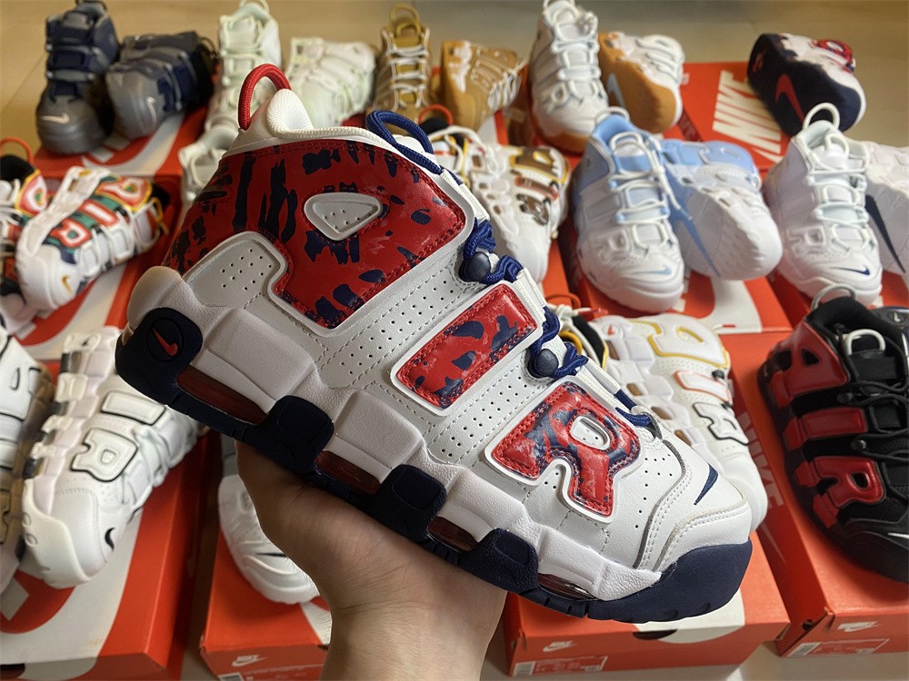 The whole pair of shoes is made of white, and the toe, laces and outsole are embellished with navy blue, bringing a very refreshing color effect, while the iconic big AIR on the side is dressed in red. The color matching effect is very eye-catching, and the red, white and blue colors also form the iconic US team color matching.