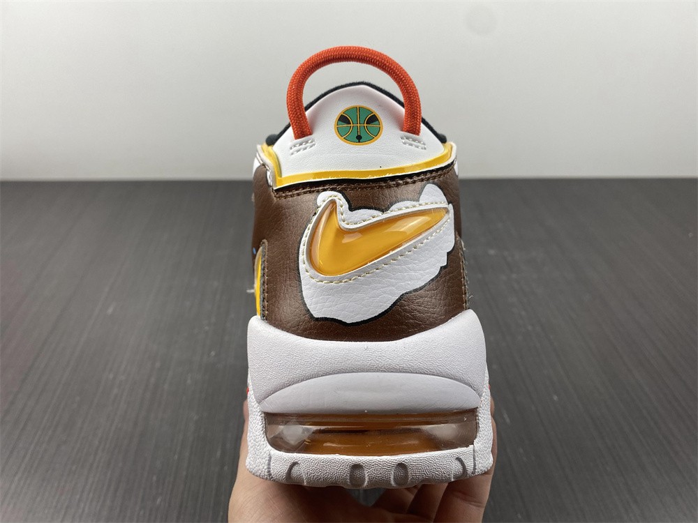 The upper is made of white leather, and the iconic Air lettering on the side is outlined in black, red, and yellow, which contrasts with the white upper for a very eye-catching visual experience and presents a classic Rayguns shape. The heel is embellished with alien headshots, showing a special color matching identity.
