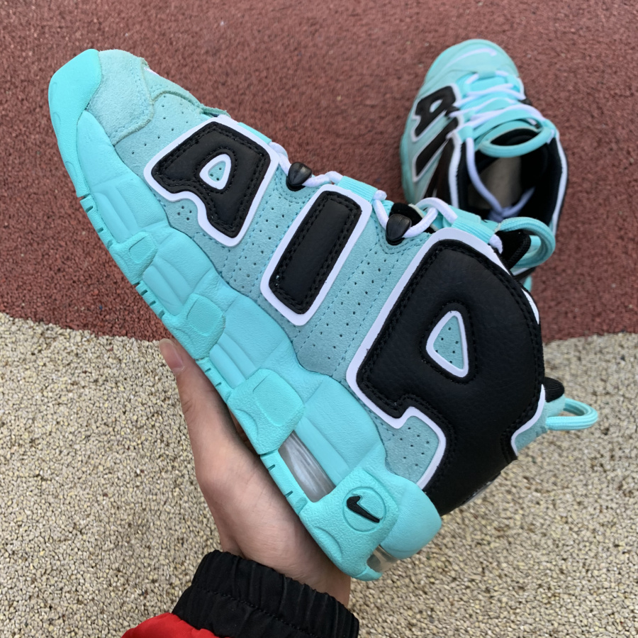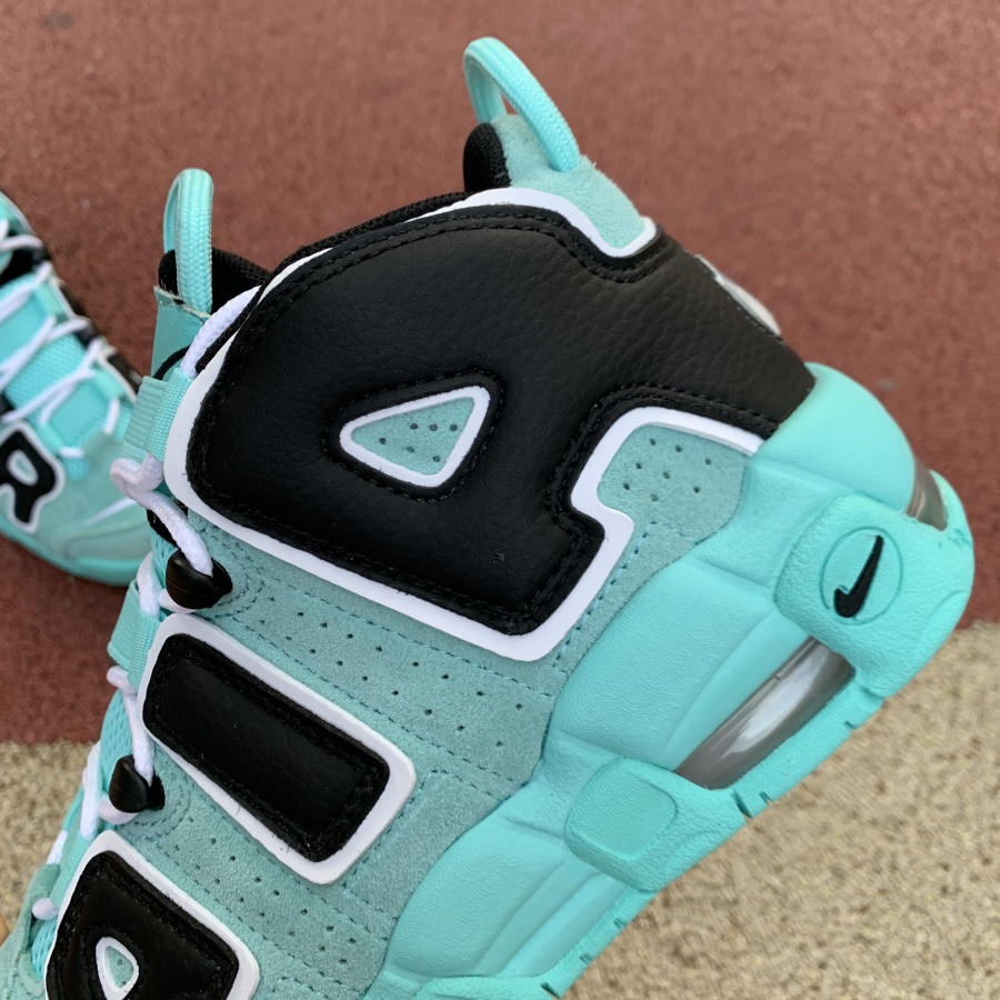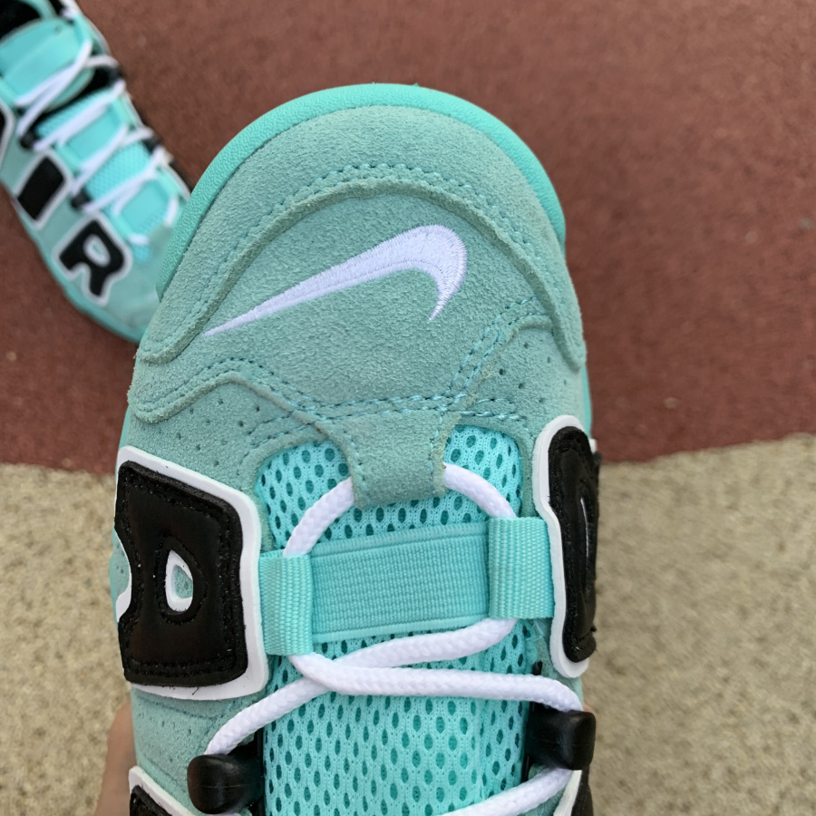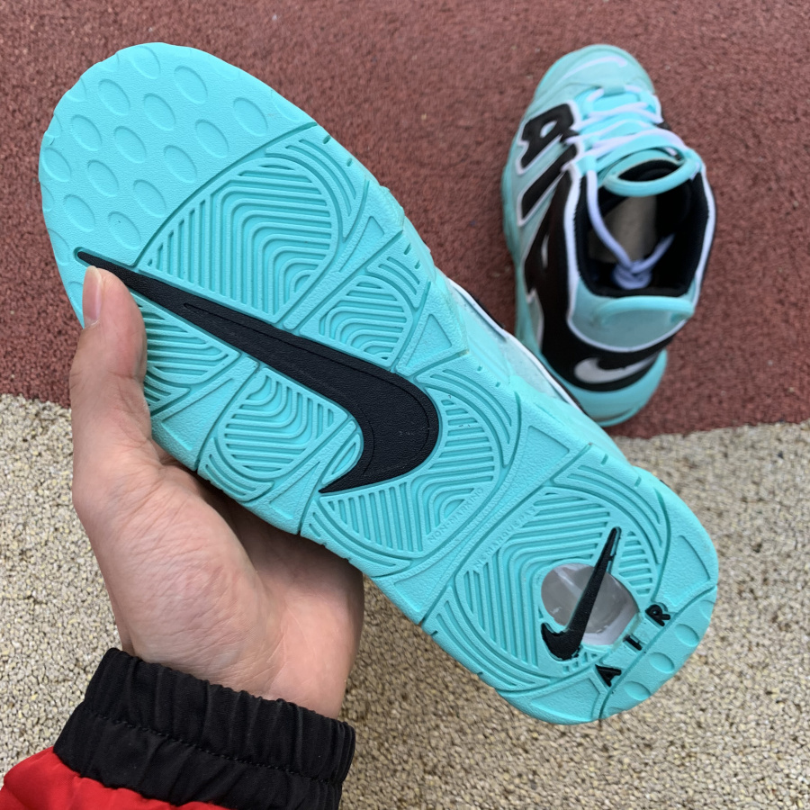 Air More Uptempo adds a new color scheme. The upper and the rubber outsole are all made of light water green. The black and white "AIR" lettering on the side of the shoe forms a sharp contrast with the body of the shoe. The fresh style is very suitable for summer.