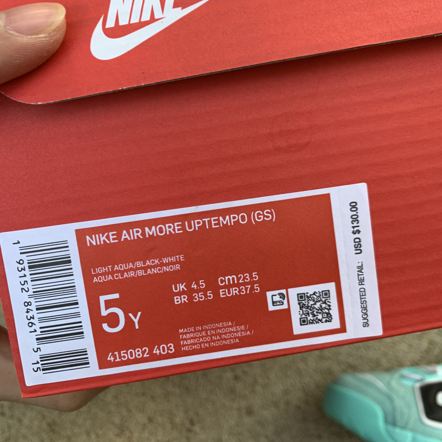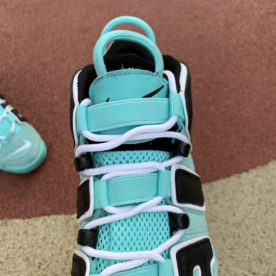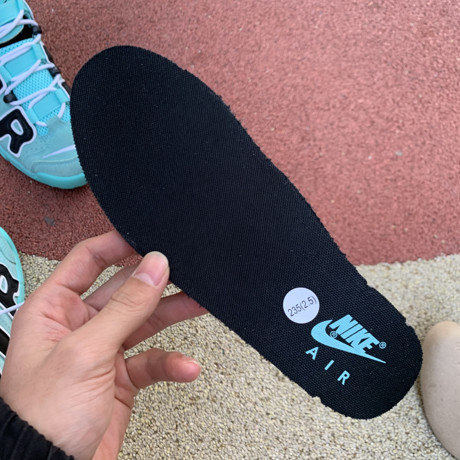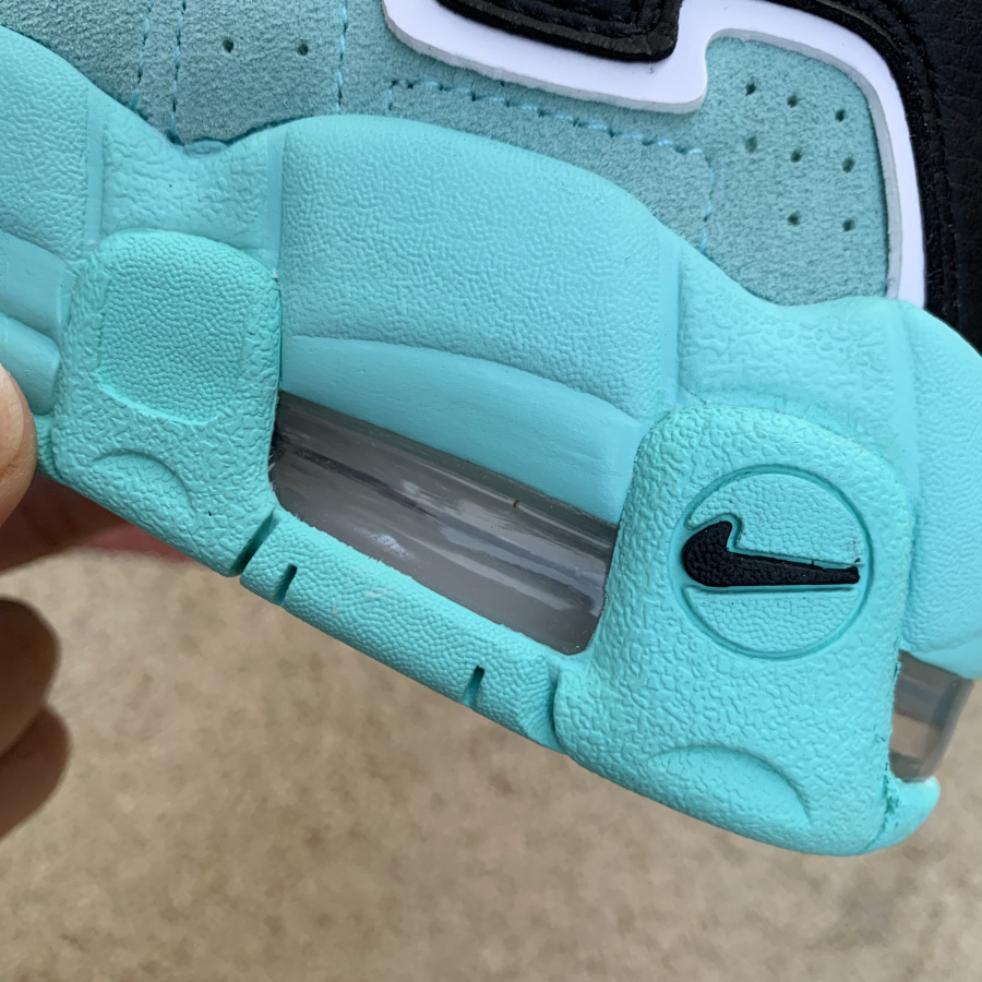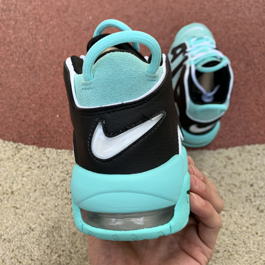 Air More Uptempo adds a new color scheme. The upper and the rubber outsole are all made of light water green. The black and white "AIR" lettering on the side of the shoe forms a sharp contrast with the body of the shoe. The fresh style is very suitable for summer.