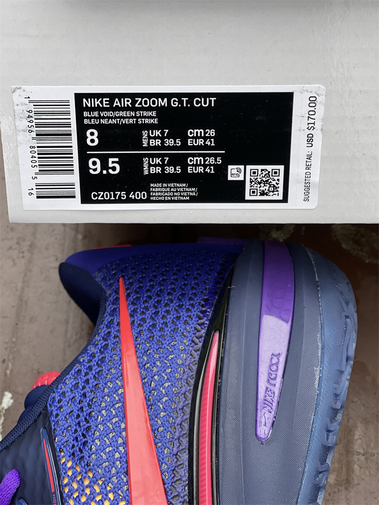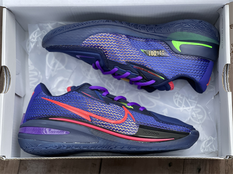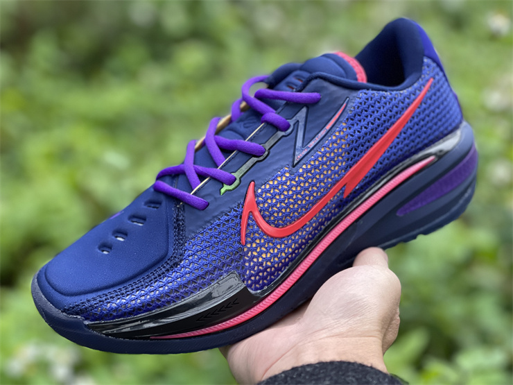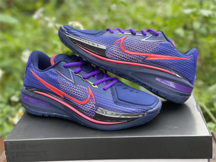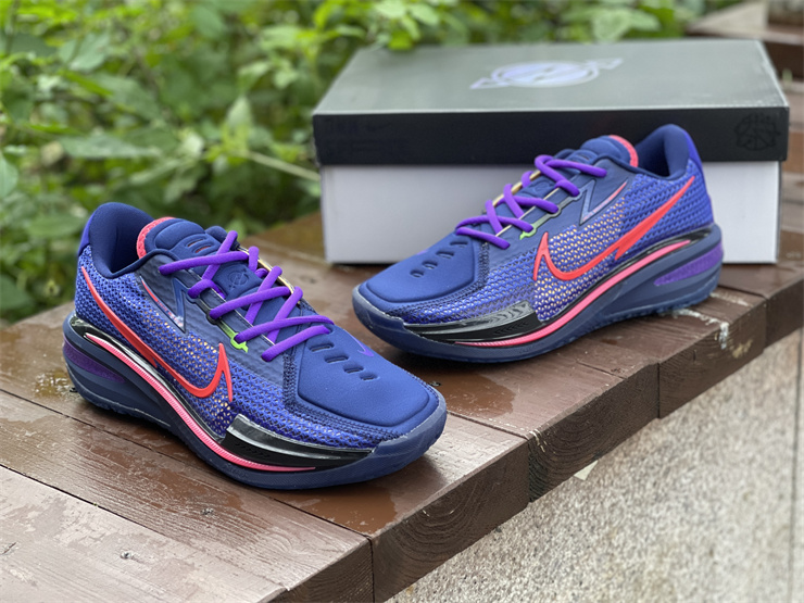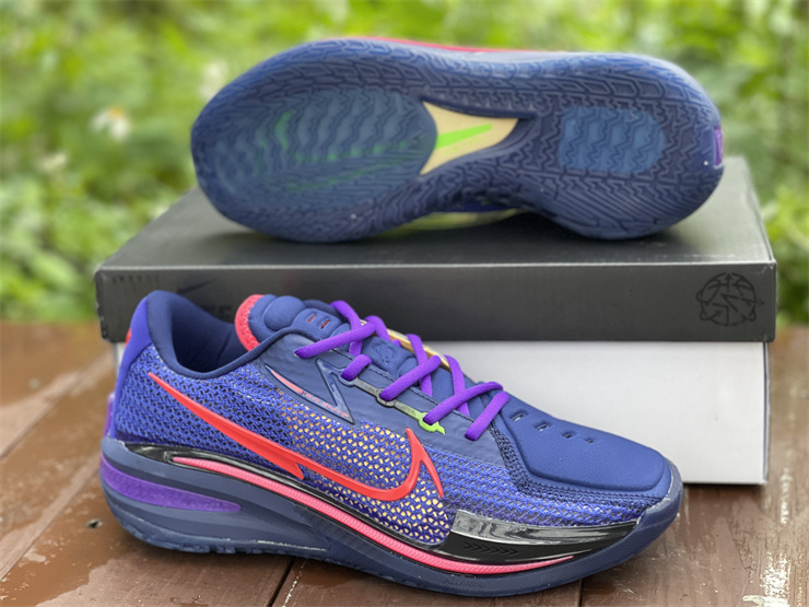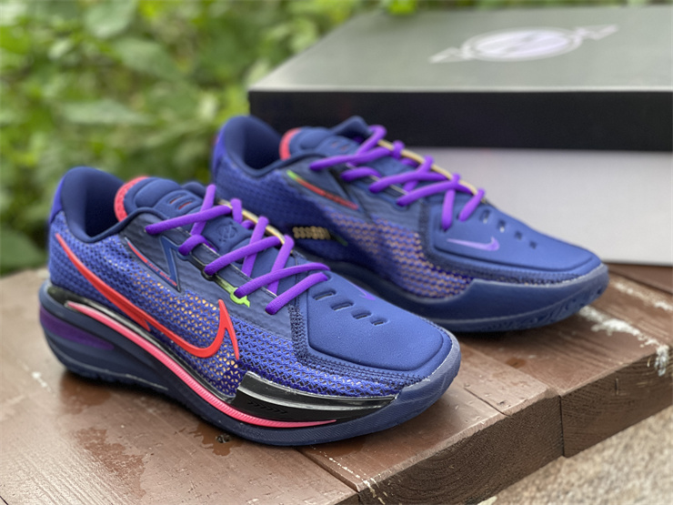 Nike GT basketball shoes blue, red and purple Nike Zoom GT Cut is mainly blue and red as a whole, with black and purple as embellishments. The left and right heels of this series of shoes are equipped with the words "GT" and the brand new logo of the shoe series. The "GT" suffix often appears on high-speed sports cars, and the Nike Zoom GT Cut has the same streamlined appearance and high-tech configuration as a pair of super sports cars.