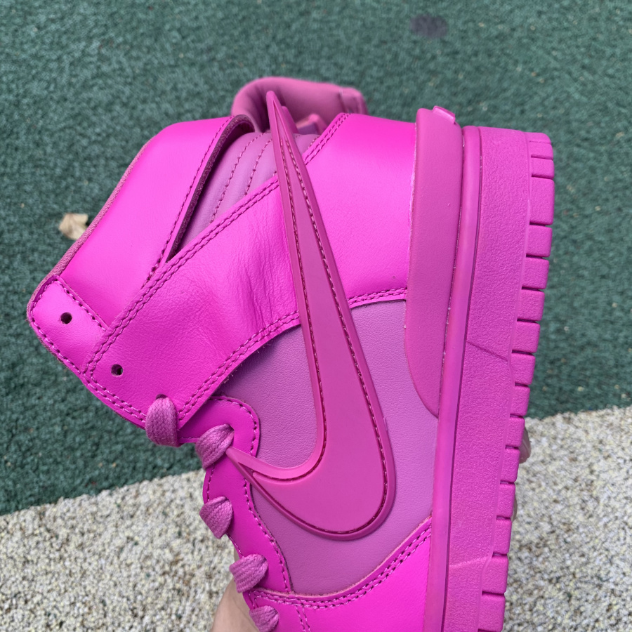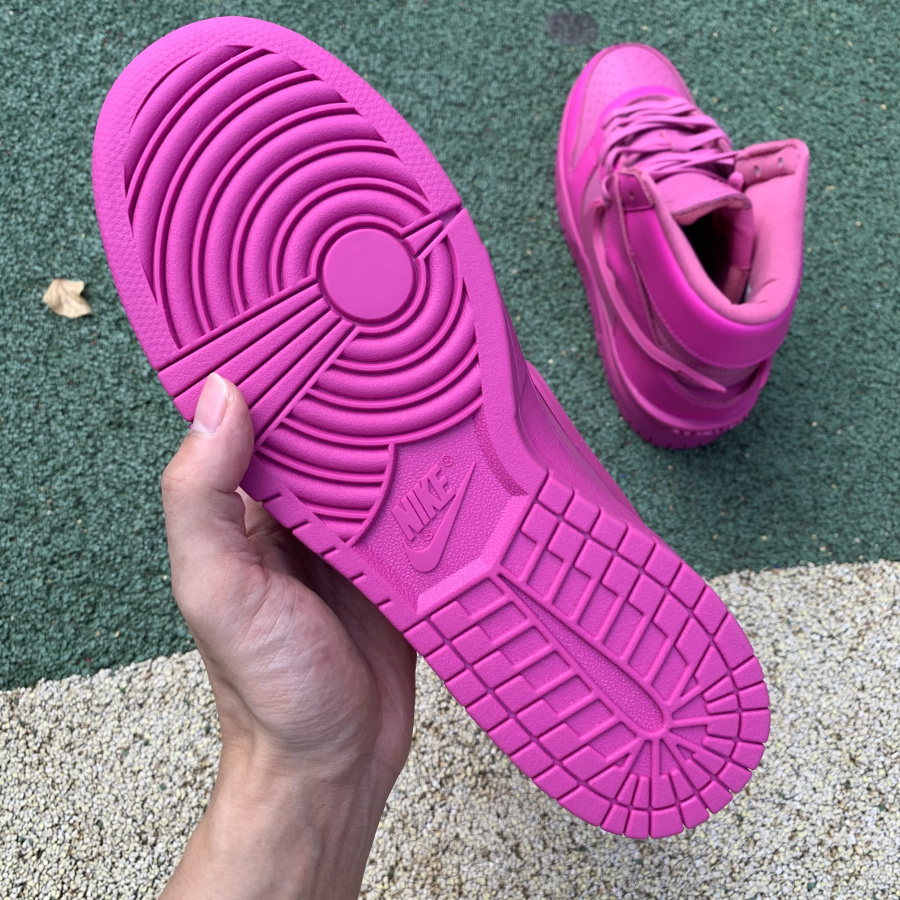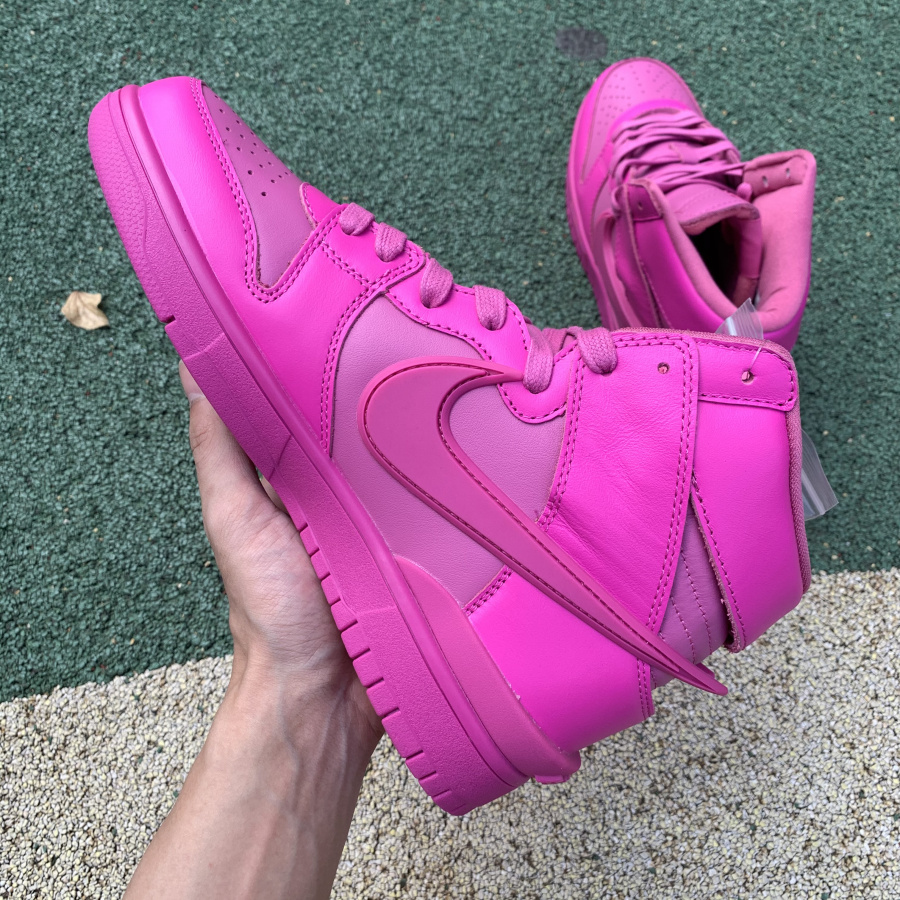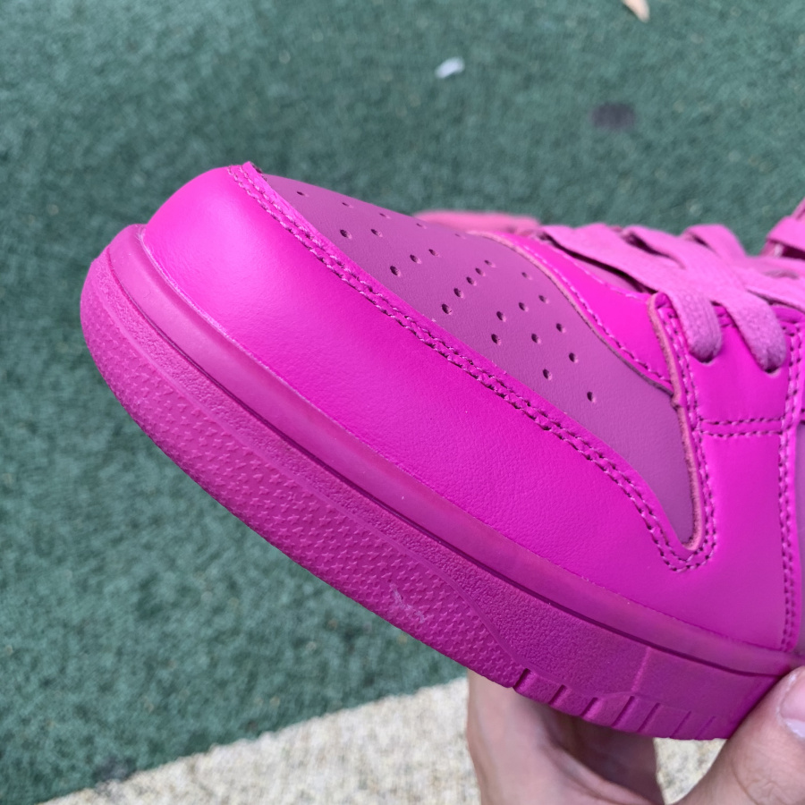 The bright pink shape of this shoe brings a strong visual effect, and the upper material is made of lychee leather with outstanding texture. The same exaggerated huge Swoosh embellishes the shoe body,