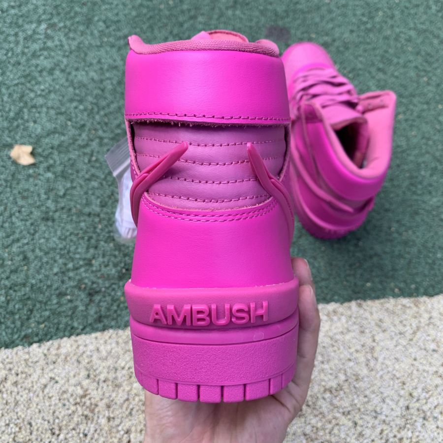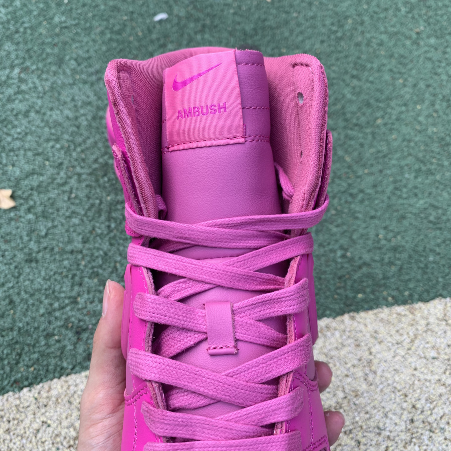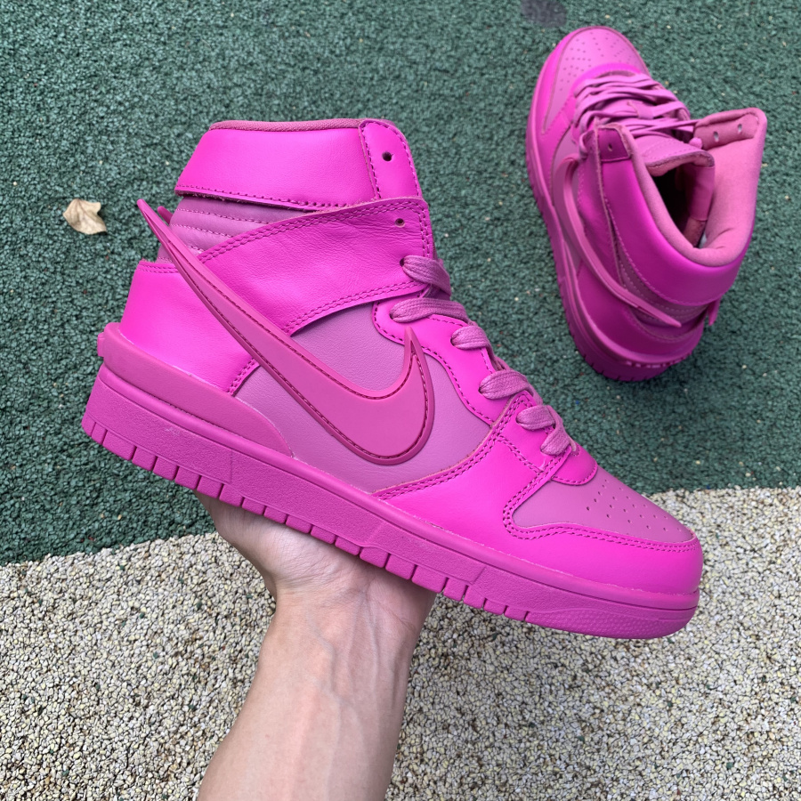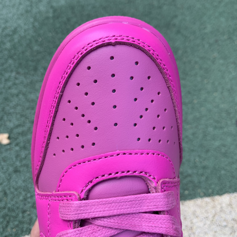 The bright pink shape of this shoe brings a strong visual effect, and the upper material is made of lychee leather with outstanding texture. The same exaggerated huge Swoosh embellishes the shoe body,