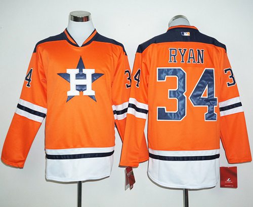 Astros #34 Nolan Ryan Orange Long Sleeve Stitched MLB Jersey