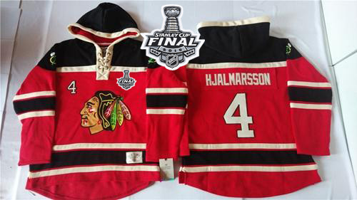 Blackhawks #4 Niklas Hjalmarsson Red Sawyer Hooded Sweatshirt 2015 Stanley Cup Stitched NHL Jersey