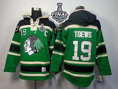 Blackhawks #19 Jonathan Toews Green St. Patrick's Day McNary Lace Hoodie 2015 Stanley Cup Stitched NHL Jersey