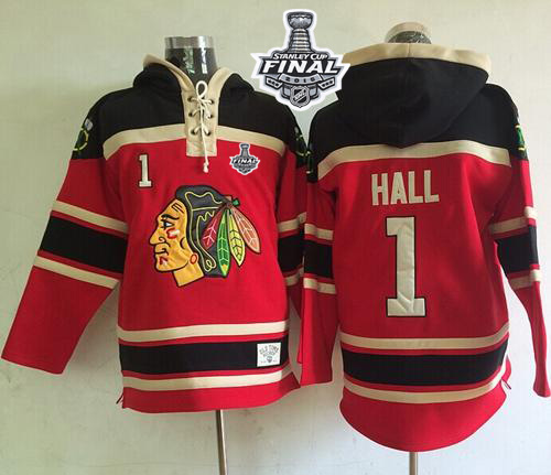 Blackhawks #1 Glenn Hall Red Sawyer Hooded Sweatshirt 2015 Stanley Cup Stitched NHL Jersey