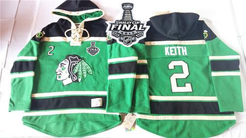 Blackhawks #2 Duncan Keith Green St. Patrick's Day McNary Lace Hoodie 2015 Stanley Cup Stitched NHL Jersey