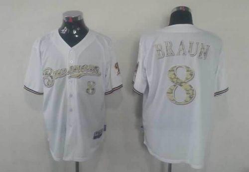 Brewers #8 Ryan Braun White USMC Cool Base Stitched MLB Jersey