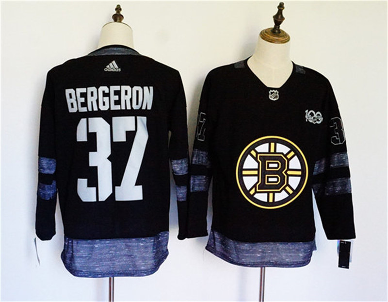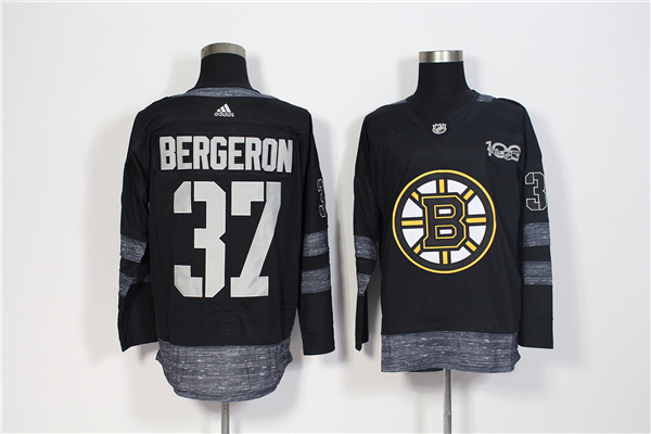 Men's Adidas Boston Bruins #37 Patrice Bergeron Black 1917-2017 100th Anniversary Stitched NHL Jersey