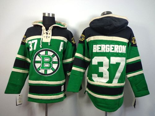 Bruins #37 Patrice Bergeron Green St. Patrick's Day McNary Lace Hoodie Stitched NHL Jersey