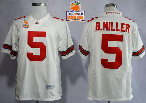 Buckeyes #5 Braxton Miller White Limited 2014 Discover Orange Bowl Patch Stitched NCAA Jersey