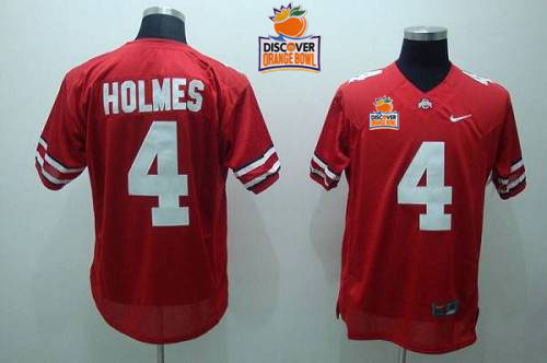 Buckeyes #4 Santonio Holmes Red 2014 Discover Orange Bowl Patch Stitched NCAA Jersey