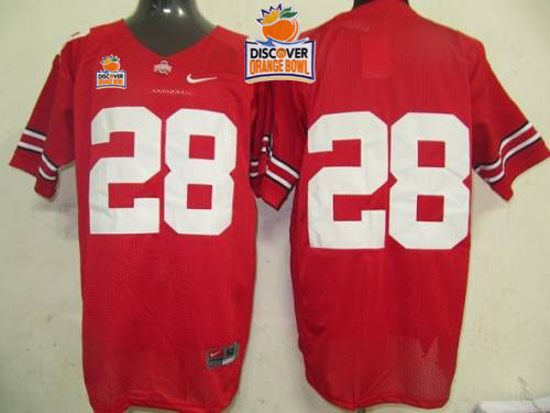 Buckeyes #28 Red 2014 Discover Orange Bowl Patch Stitched NCAA Jersey