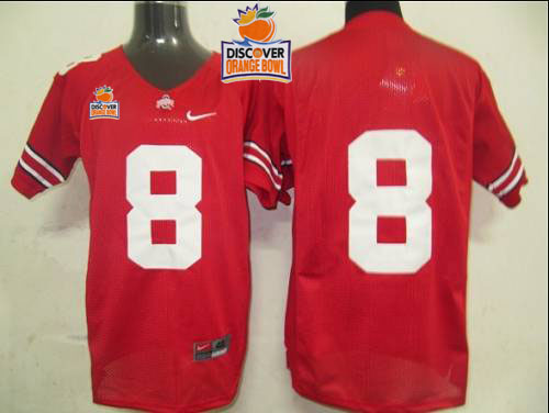 Buckeyes #8 Red 2014 Discover Orange Bowl Patch Stitched NCAA Jersey