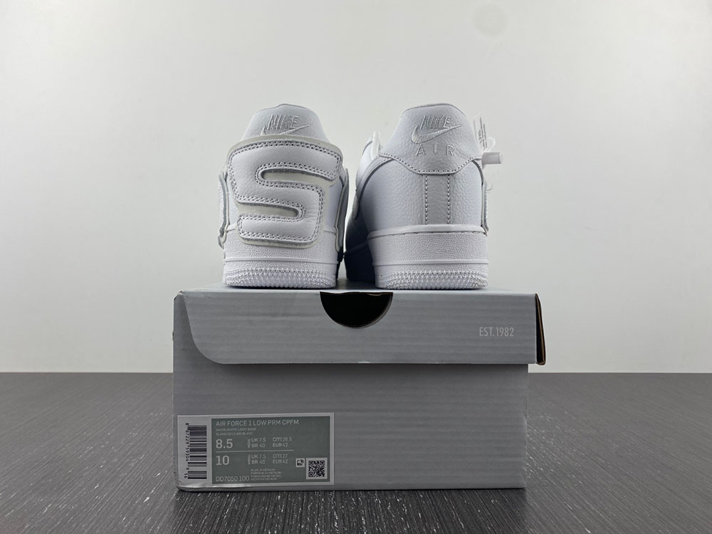 CPFM x Nk Air Force 1'07 Low 3M Reflective Air Force One low-top casual skates shoes in a white tone, with leather material to create. The outside is decorated with the words SUN and HINE, and the heel of the left foot is decorated with the words S, showing the word SUNSHINE, the design style resembles Pippen.