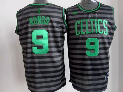 Celtics #9 Rajon Rondo Black/Grey Groove Embroidered NBA Jersey