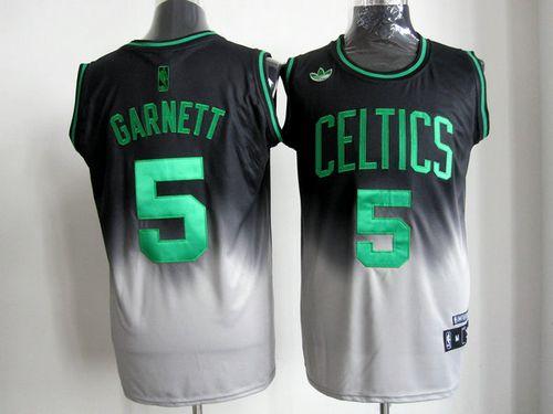 Celtics #5 Kevin Garnett Black/Grey Fadeaway Fashion Embroidered NBA Jersey