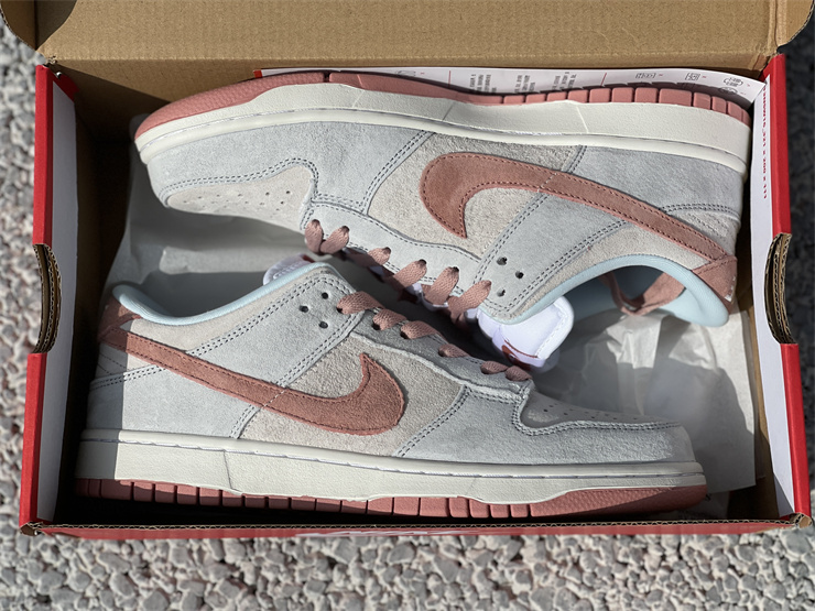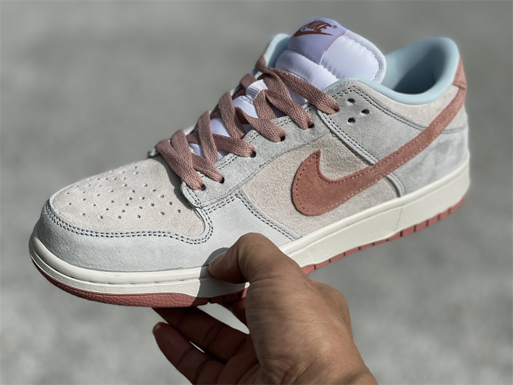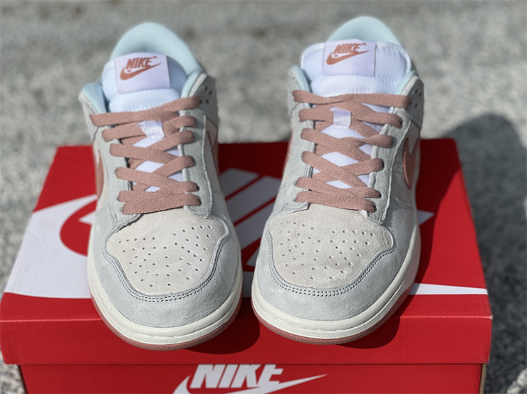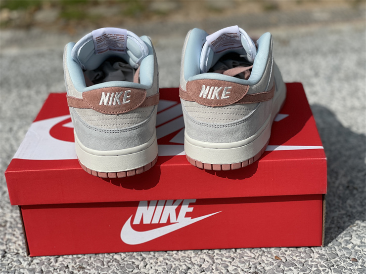 This new color scheme of Dunk Low Fossil Rose, the upper is composed of a large area of beige, silver gray, light blue and other colors, and accompanied by the suede fabric with outstanding texture, the overall appearance can be Said to be very playable in this year's Dunk Low series.