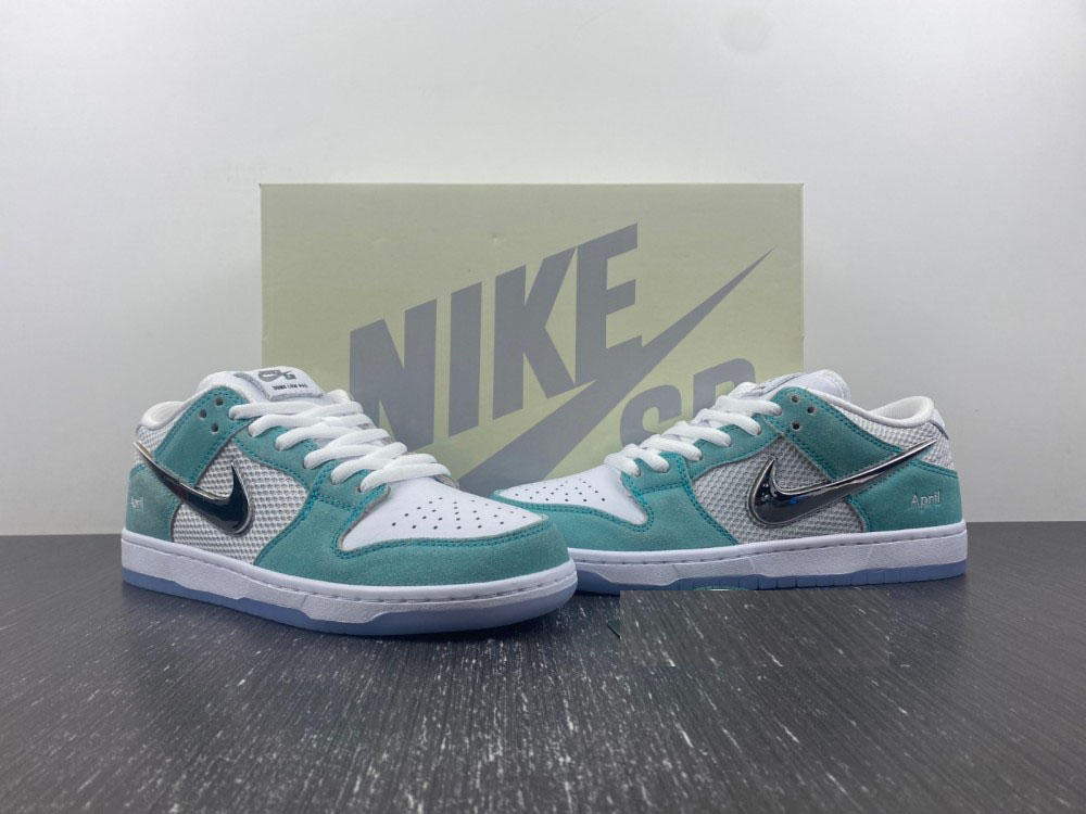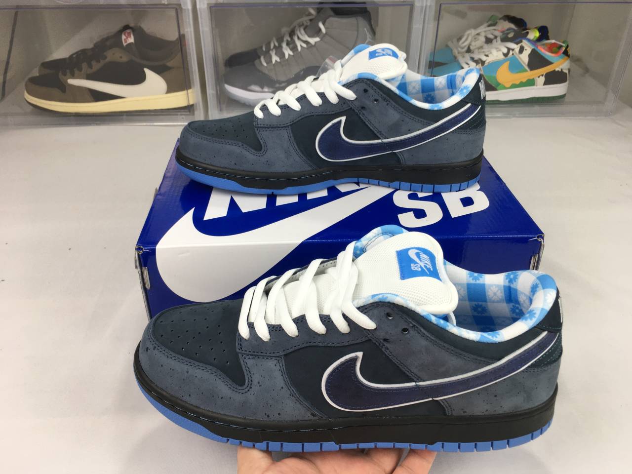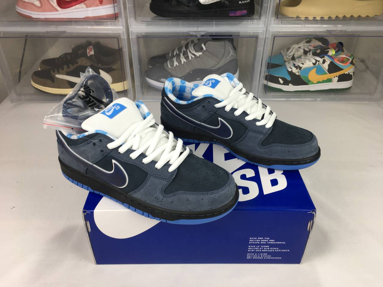 The Dunk Blue and Lobster shoe is stunning in a pale blue color, with white stitches and teal suede Swoosh accents, as well as details such as the strap design at the toe and the tongue tag perials.