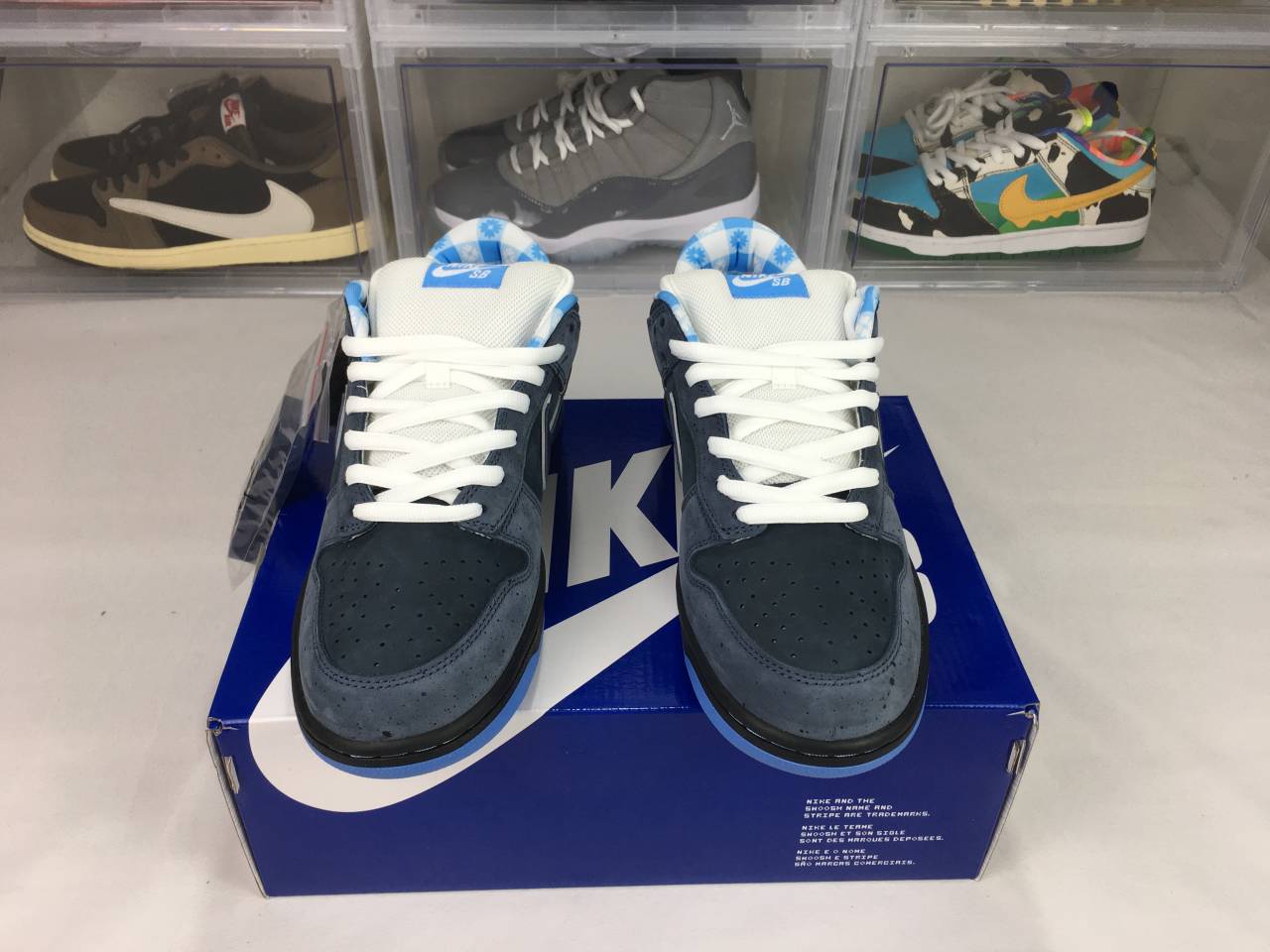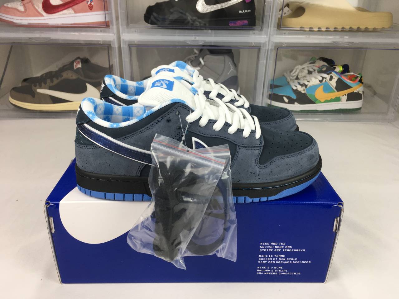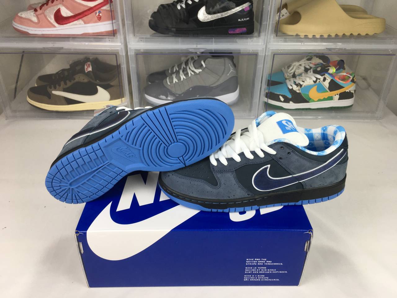 The Dunk Blue and Lobster shoe is stunning in a pale blue color, with white stitches and teal suede Swoosh accents, as well as details such as the strap design at the toe and the tongue tag perials.