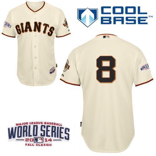 Giants #8 Hunter Pence Cream Cool Base W/2014 World Series Patch Stitched MLB Jersey