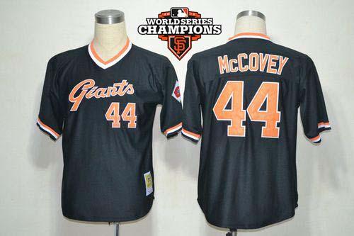 Mitchell And Ness Giants #44 Willie McCovey Black Throwback w/2012 World Series Champion Patch Stitched MLB Jersey