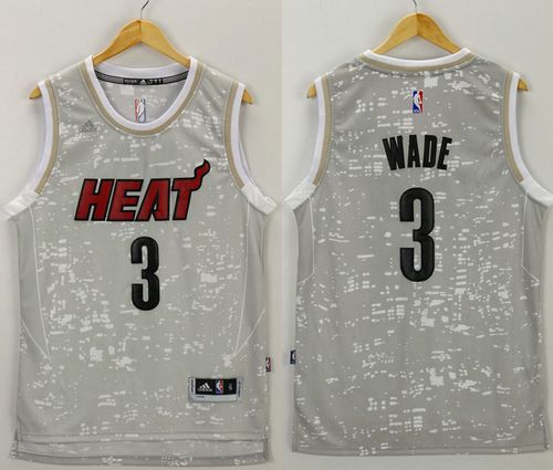Heat #3 Dwyane Wade Grey City Light Stitched NBA Jersey