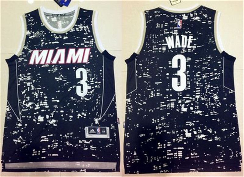Heat #3 Dwyane Wade Black City Light Stitched NBA Jersey