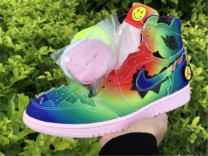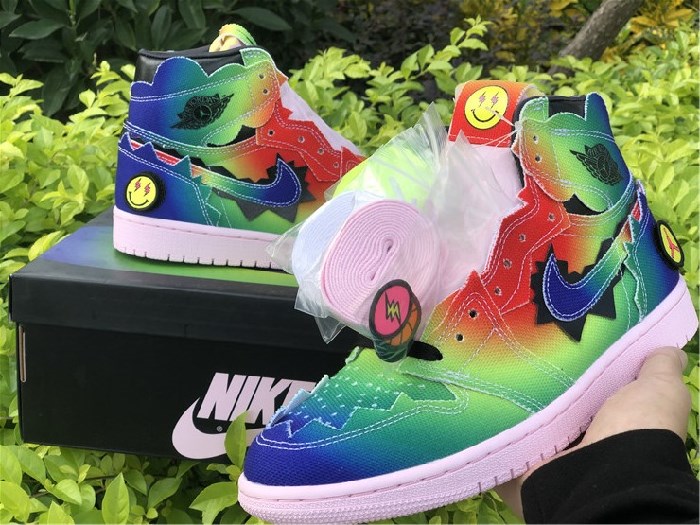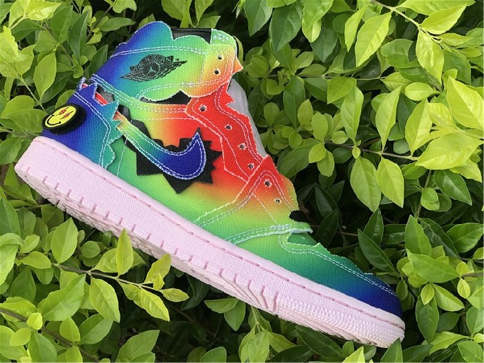 Featuring a gradient rainbow tie-dye accent, these shoes feature a multi-layered canvas upper with jagged edges for on-trend personality. J Balvin's musically dynamic Happy Face logo appears on the tongue and side of the shoe, enhancing the fun and recognition, and finally equipped with a white sole that is fresh and eye-catching and echoes the whole. The gradient rainbow tie-dyed canvas upper is eye-catching, and the never-before-seen jagged cut on the shoe body is eye-catching and has a unique visual effect.