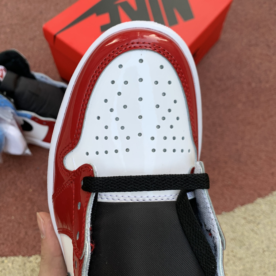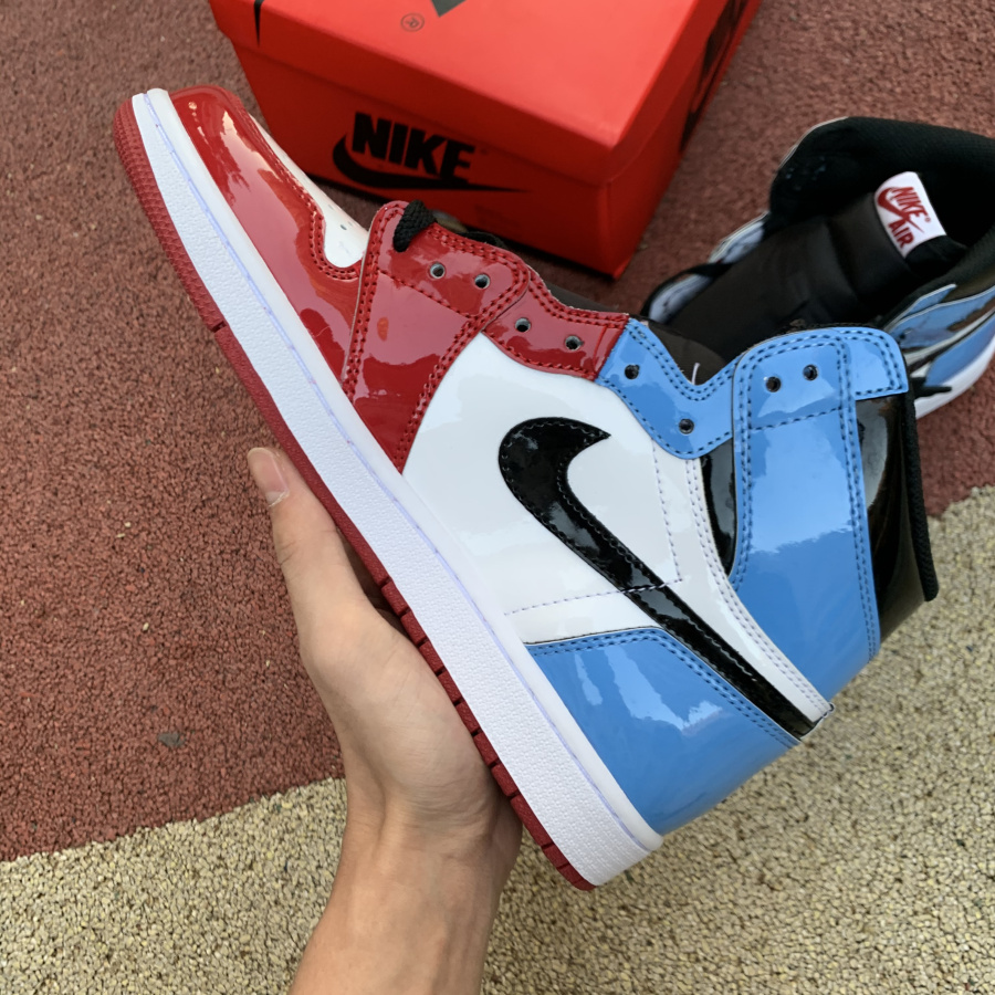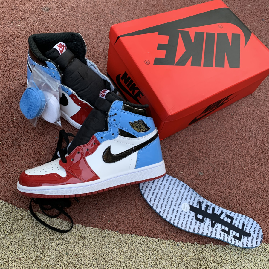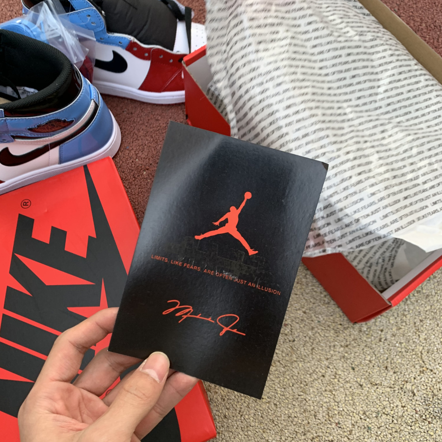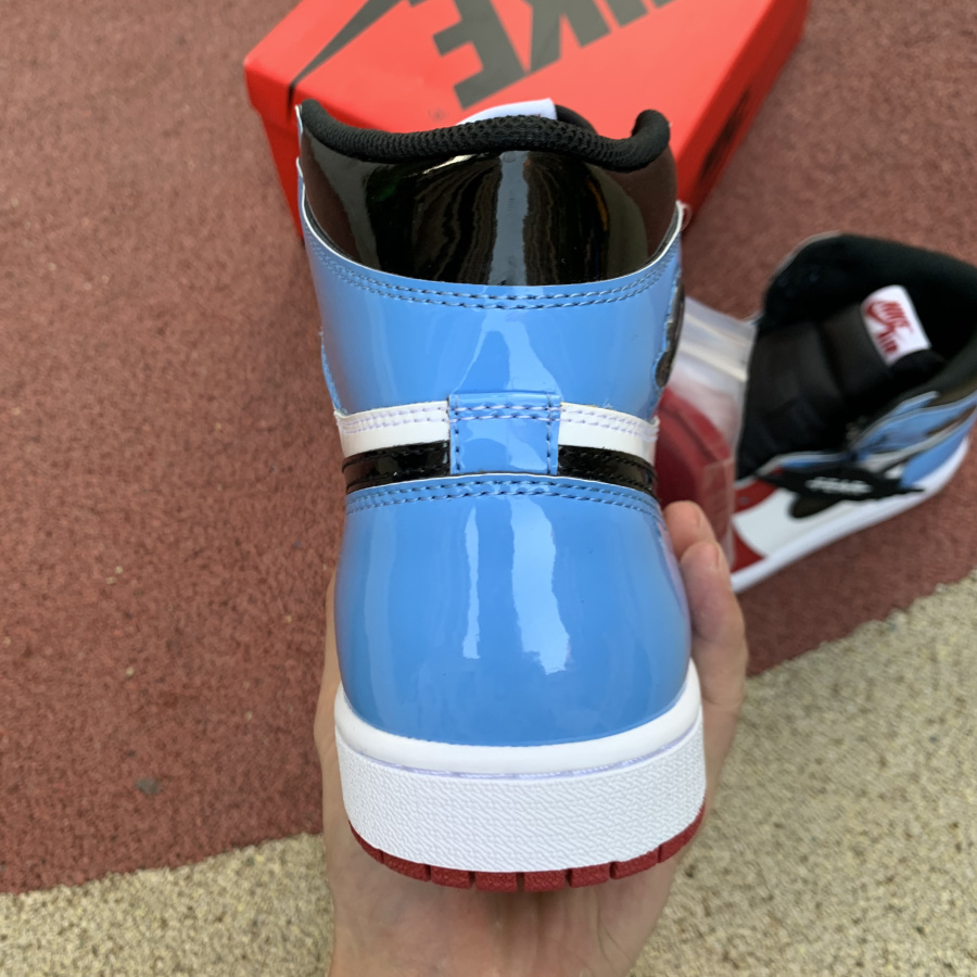 This edition is crafted with a glossy patent leather upper that combines Bulls and UNC colors, elevated with a metallic gold wings logo. Wise words from the legend—'Limits, like fears, are often just an illusion'—are printed on the insole.