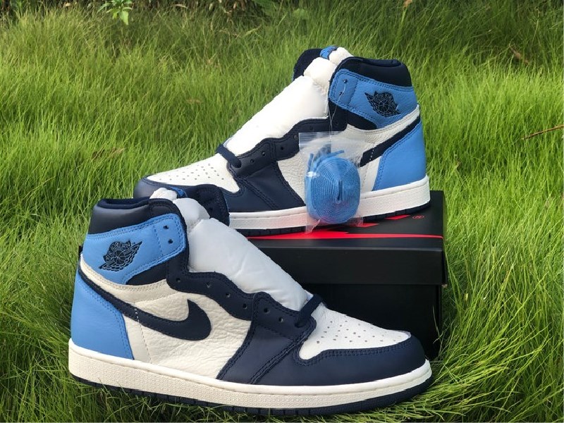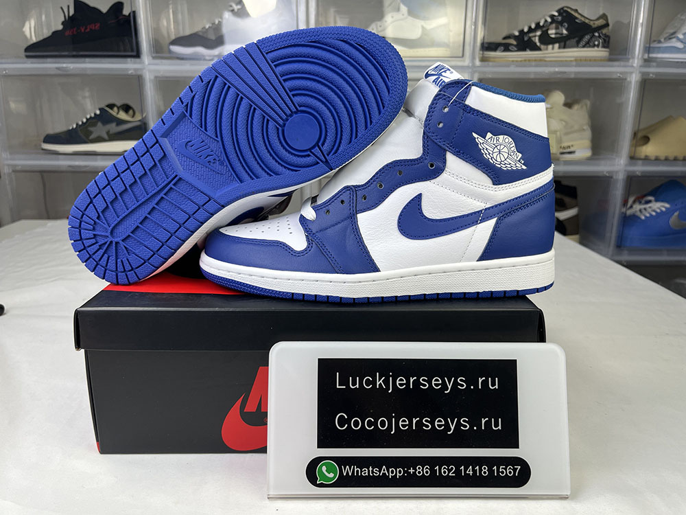 This classic Air Jordan 1 features a two-tone mix of White with Storm Blue trim overlay. Completed with its iconic White midsole and a solid Blue rubber outsole.