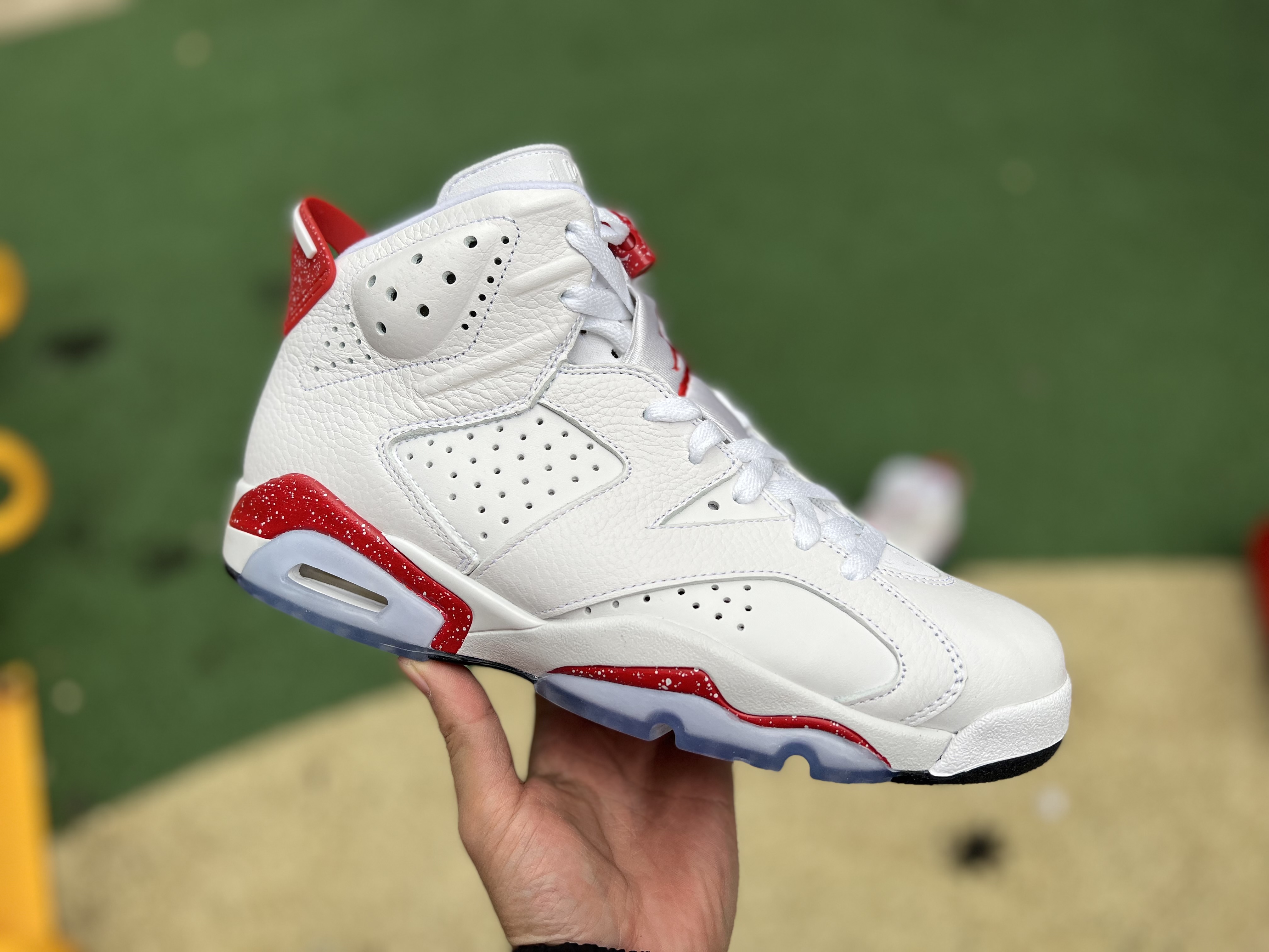 Different from the renderings, the whole pair of shoes is dressed in a large area of white leather, with red embellishments on the midsole, heel and other details. At the same time, the red part is integrated into the white ink splash design. A translucent crystal outsole completes the shoe's design.