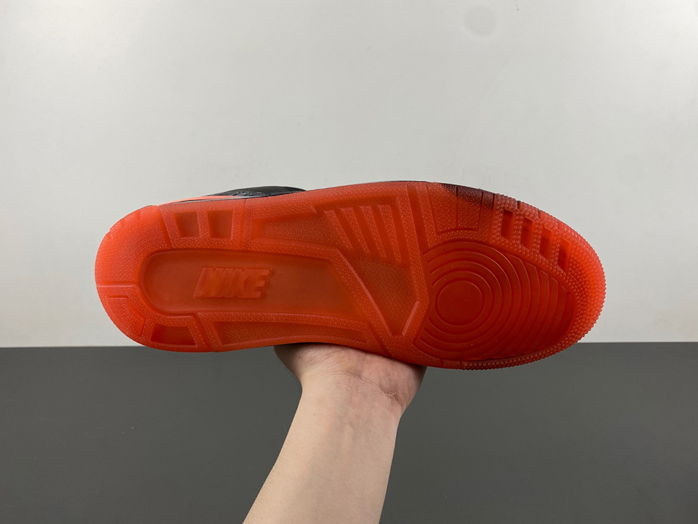 The cuts on the upper leather are filled with black, and the colorful gradient tones are presented. It injects eye-catching vitality and recognition. The black tongue is decorated with the Jumpman Logo, Nike Air and JBalvin's lightning smiley face Logo.